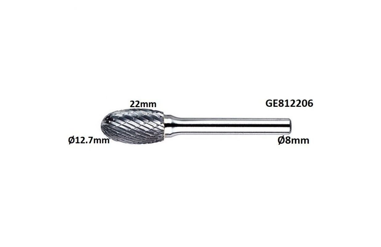 Твердосплавная фреза, форма E овальная (TRE) - Ø12,7 x 22 мм (GE812206)