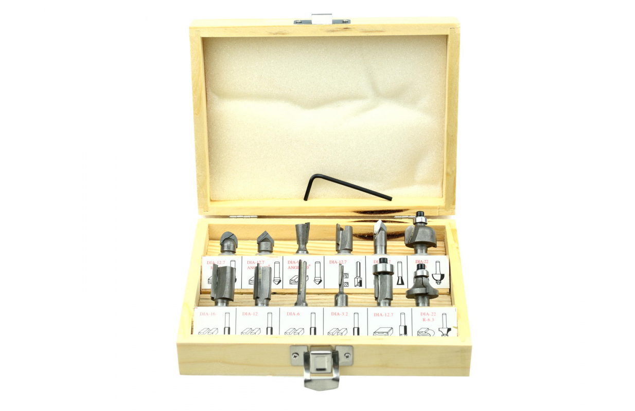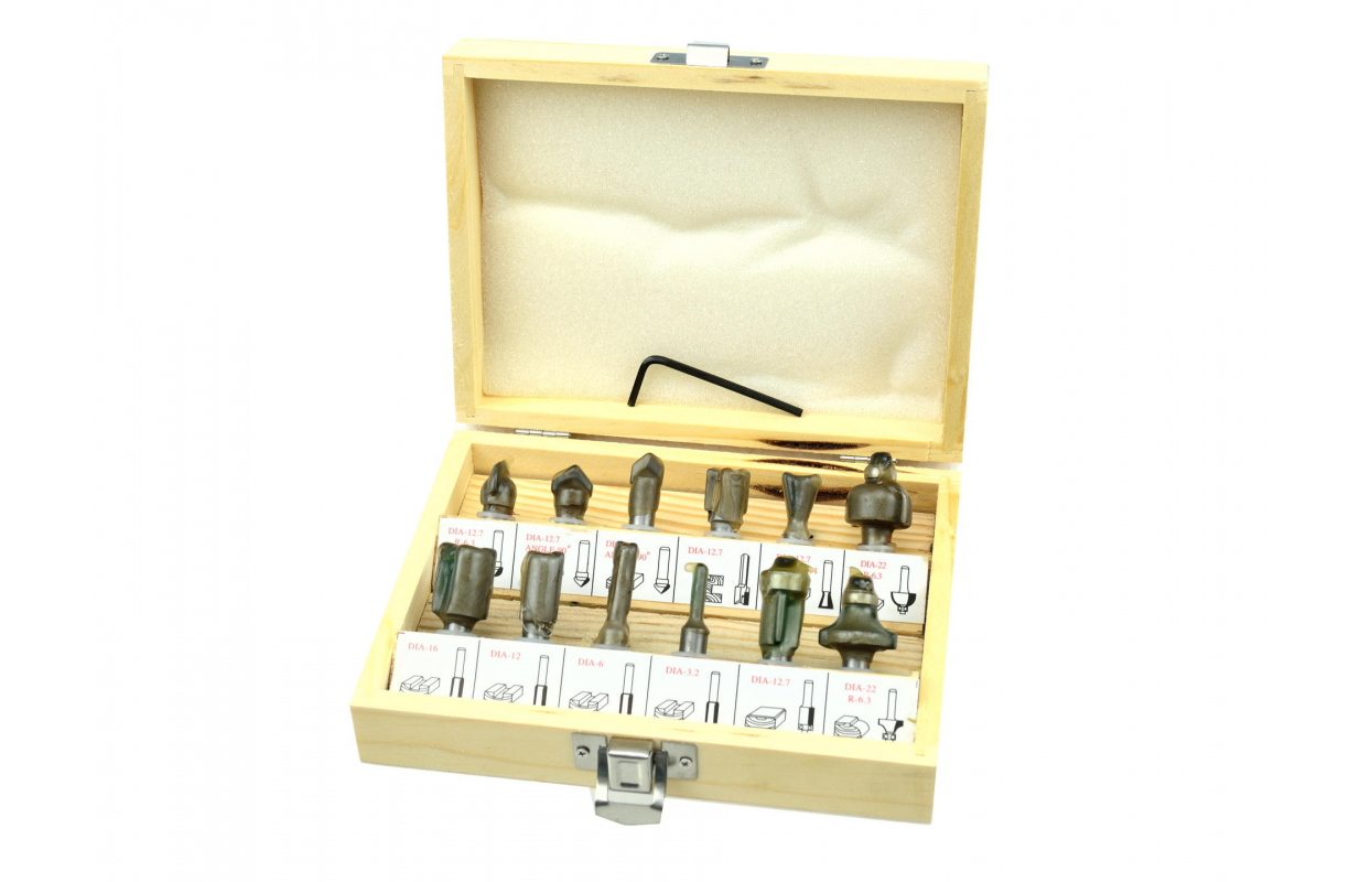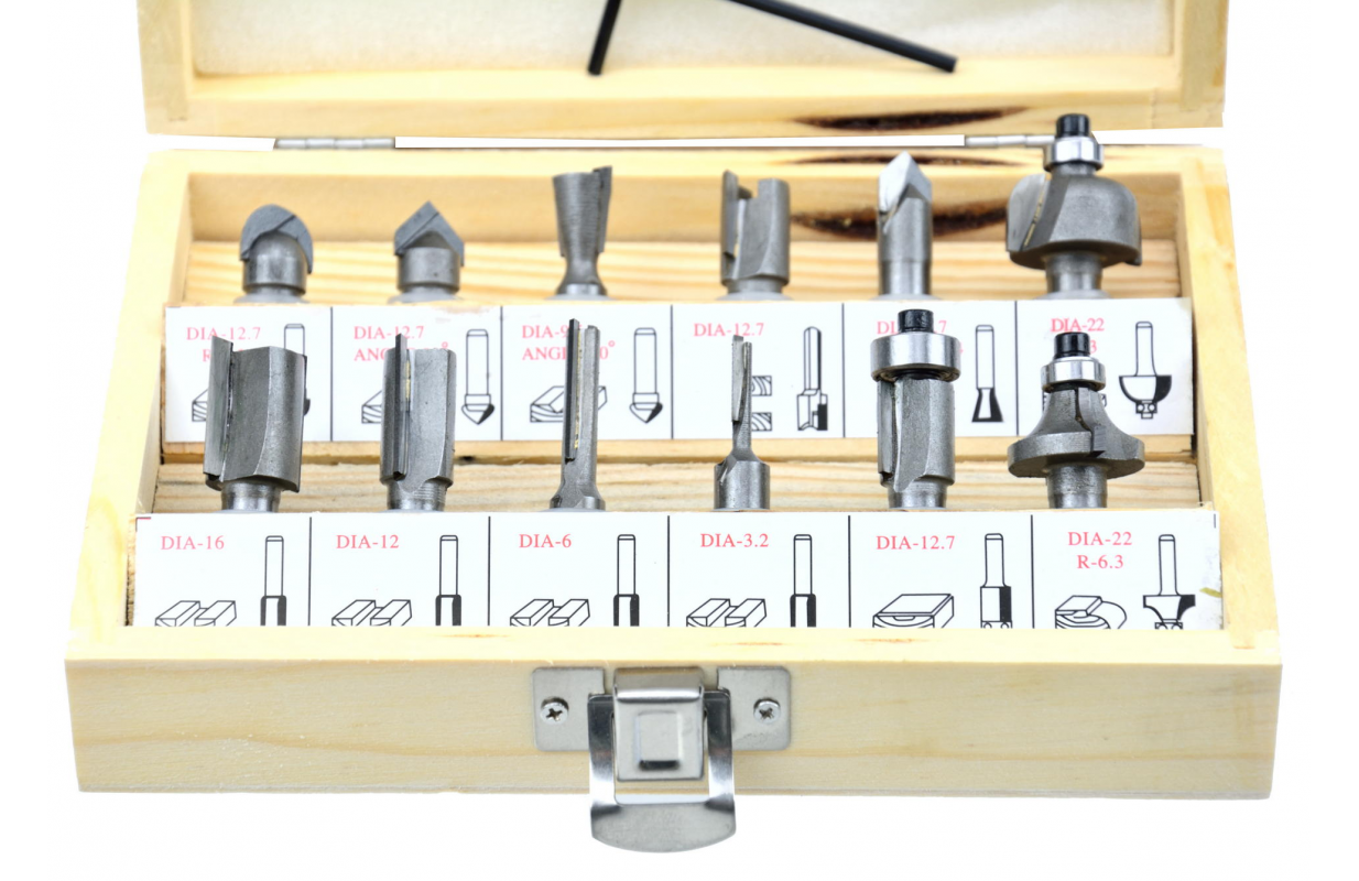 Набор из 12 профильных фрез по дереву для точной обработки материала. Лезвия из быстрорежущей стали позволяют использовать фрезы для обработки массива дерева, ДСП, МДФ и других древесных материалов. Используемые подшипники снижают сопротивление качению, поэтому фрезы идеально подходят для формовки округлых материалов. Все это дело помещено в практичный деревянный футляр, где у каждого резака есть свое подписанное место.