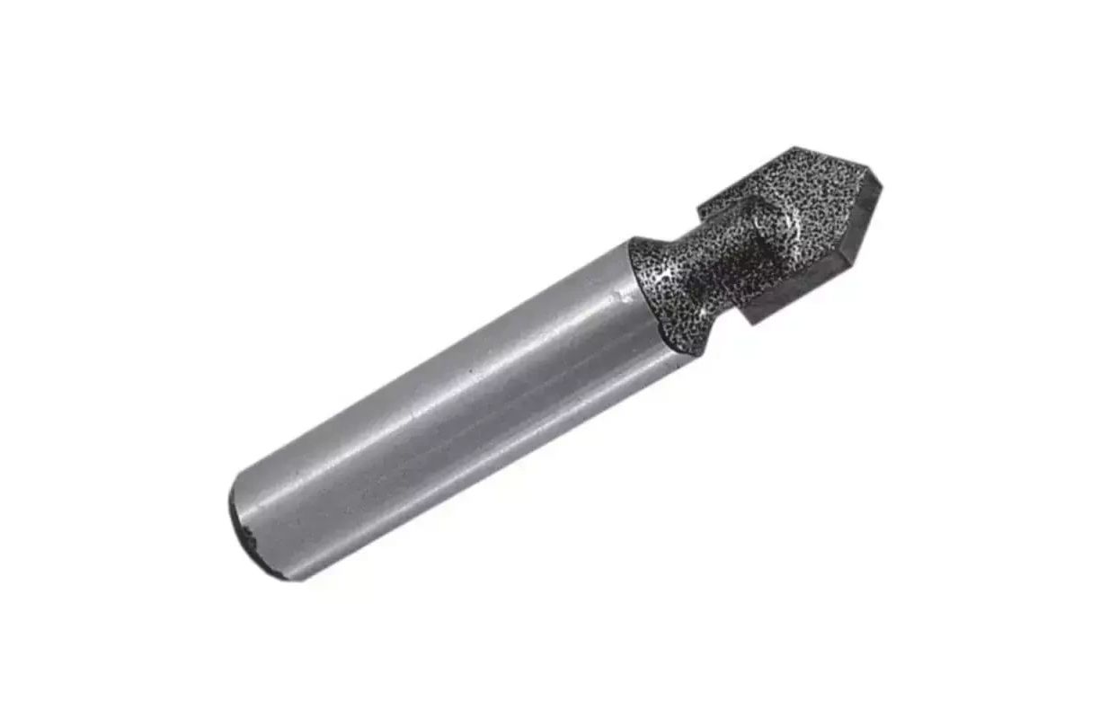 Фрезерное сверло по дереву с V-образной насечкой изготовлено из быстрорежущей стали HSS. Лезвие с двойной пластиной изготовлено из спеченного карбида. V-образная фреза подходит для обработки массивной древесины, а также фанеры, ДСП, МДФ. Головка фрезы покрыта молотковым покрытием, которое является термостойким. Диаметр держателя фрезы 8 мм.