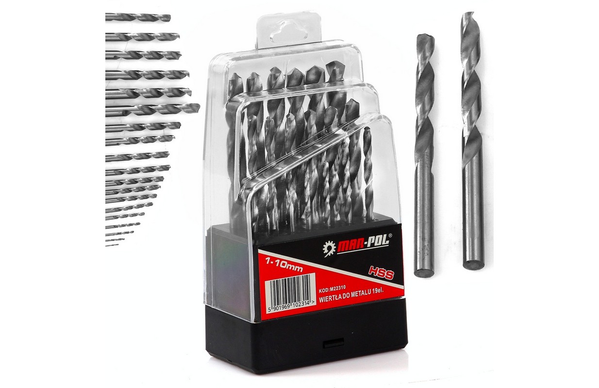 НАБОР СОСТОИТ ИЗ 19 ВЫСОКОКАЧЕСТВЕННЫХ СВЕРЛ ПО МЕТАЛЛУ HSS