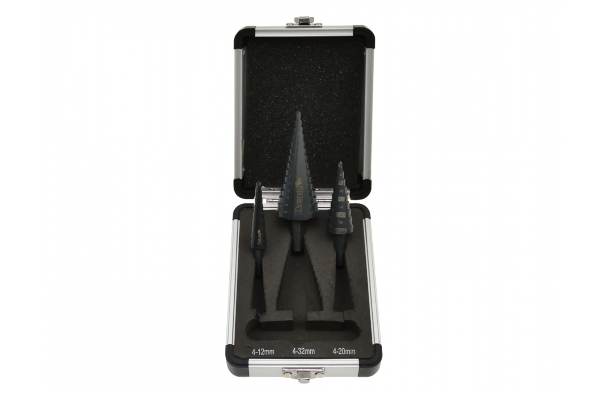 Набор ступенчатых сверл от профессионального инструментального бренда Tvarda, изготовленных из быстрорежущей стали HSS M2 высочайшего качества. Сверла 4-20 мм и 4-32 мм с шагом каждые 2 мм, сверло 4-12 мм с шагом через каждые 1 мм. Они имеют цилиндрические ручки и четкую нумерацию. Предназначен для металлов, тонкостенных стальных листов, пластмасс.