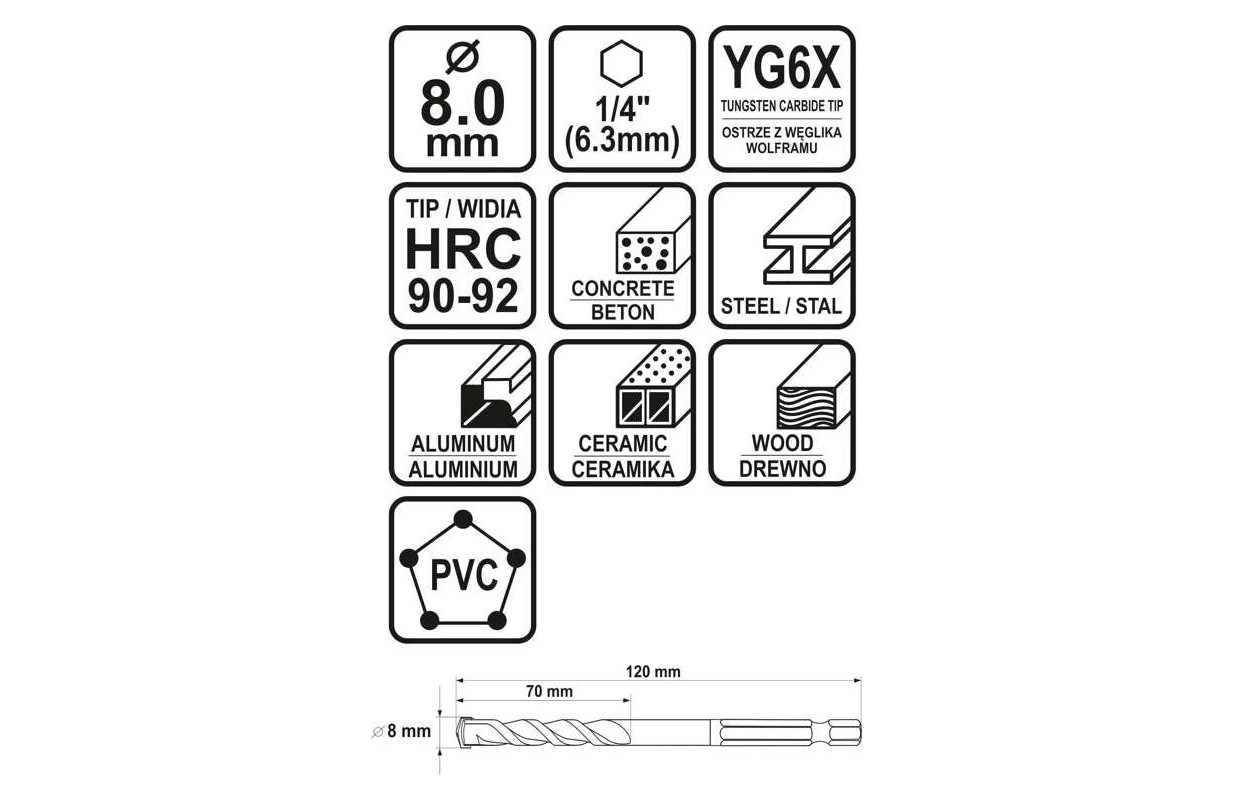 Сверло универсальное с Hex 6.3 мм (1/4") хвостовиком 8.0 мм (21690)