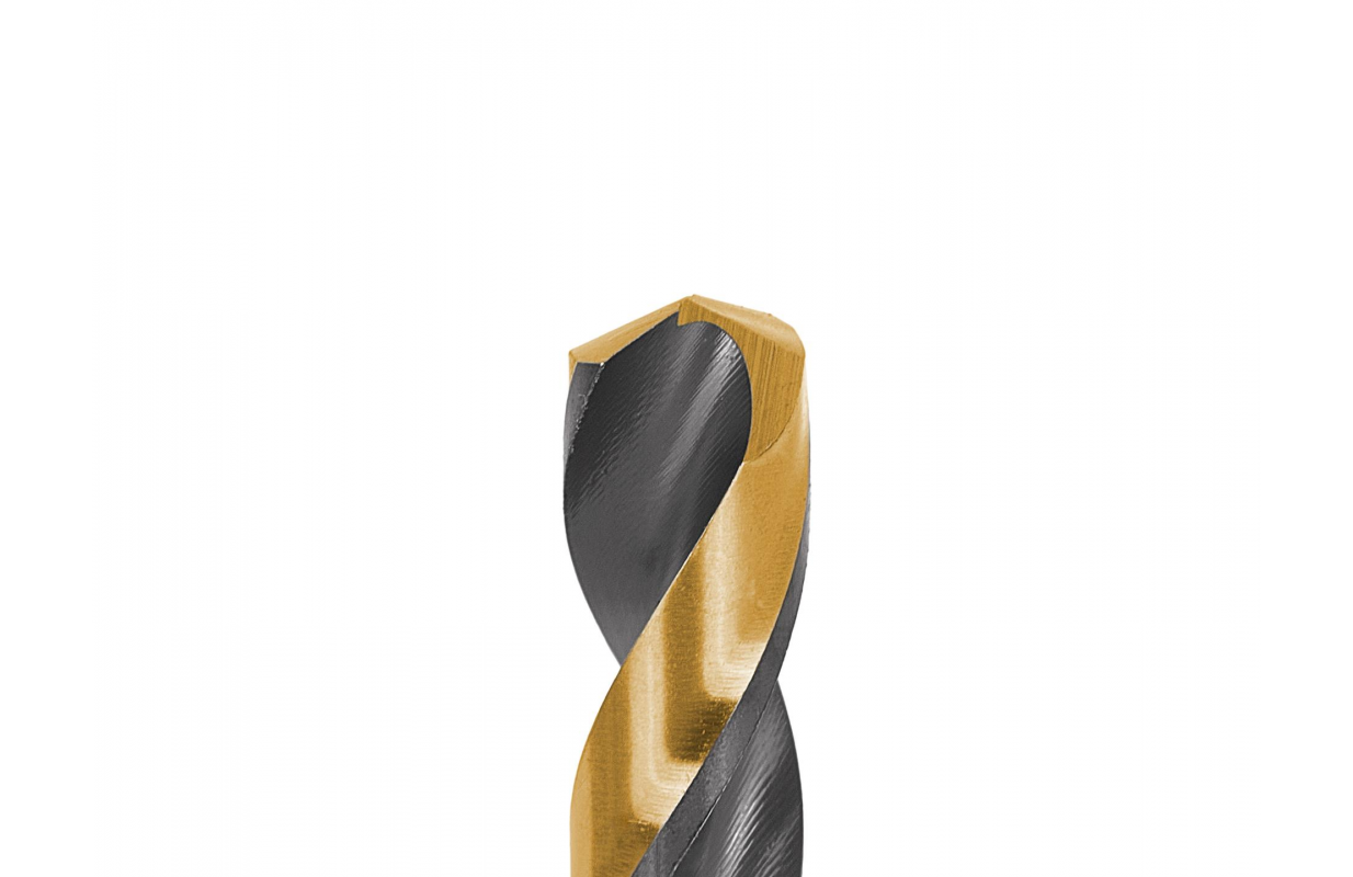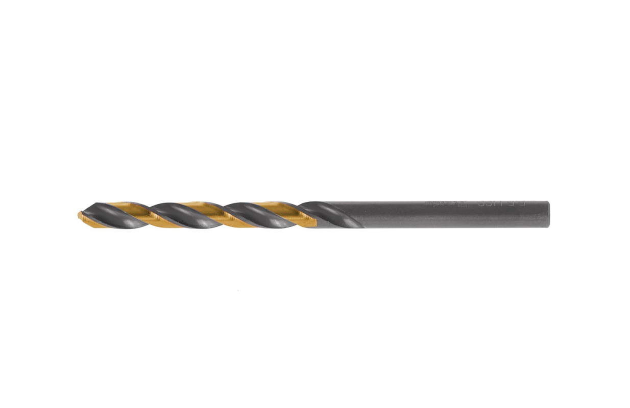 Золотисто-черные металлические сверлаиз быстрорежущей стали 4341 HSS, покрытые TiN (нитрид титана). Сверла в соответствии с DIN 338. Ручка цилиндрическая.