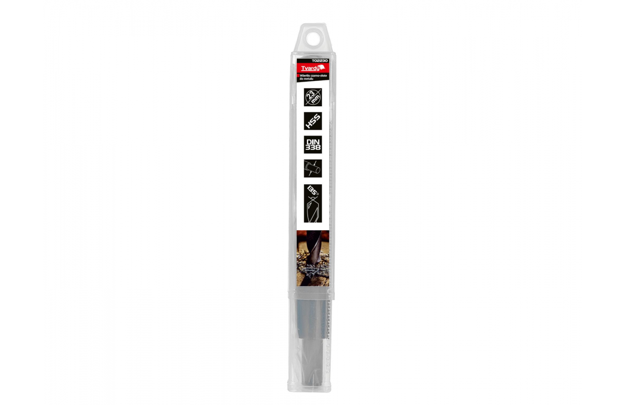 Золотисто-черное точеноесверло по металлу из быстрорежущей стали 4341 HSS, покрытое TiN (нитрид титана). Сверло в соответствии с DIN 338. Цилиндрический, катаный патрон, что позволяет использовать сверло с большим диаметром, чем диапазон сверлильного патрона.
