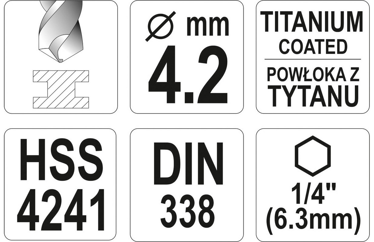 Сверло по металу HSS-TiN 4,2мм с хвост HEX (YT-44758)