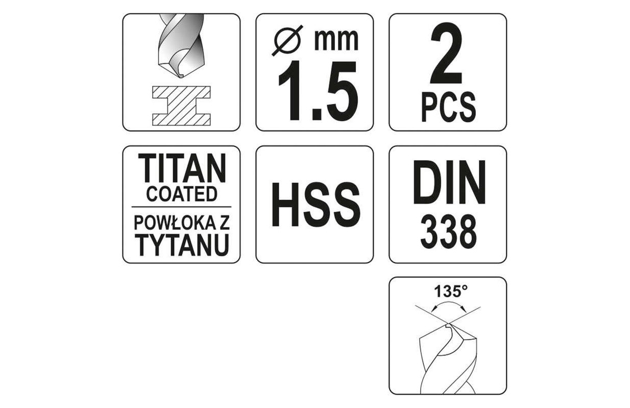 Сверло по металлу HSS-G 1.5 ММ, 2ШТ. (YT-44631)