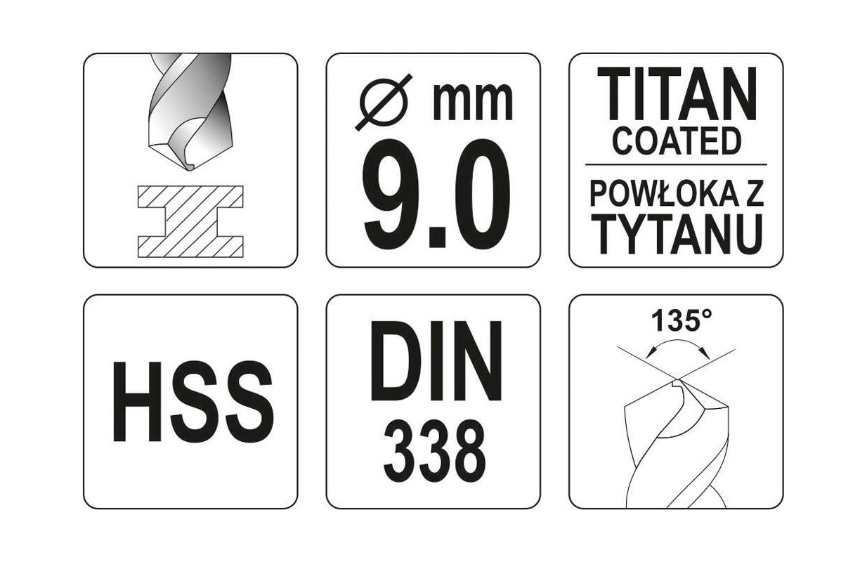 Сверло по металлу HSS-G 9.0 мм (YT-44660)