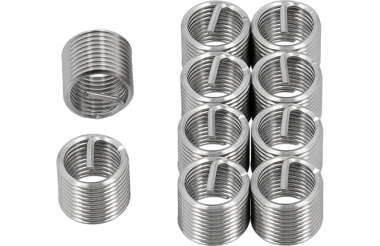 10 спиральных вставок для ремонта резьбы. Материал: нержавеющая сталь