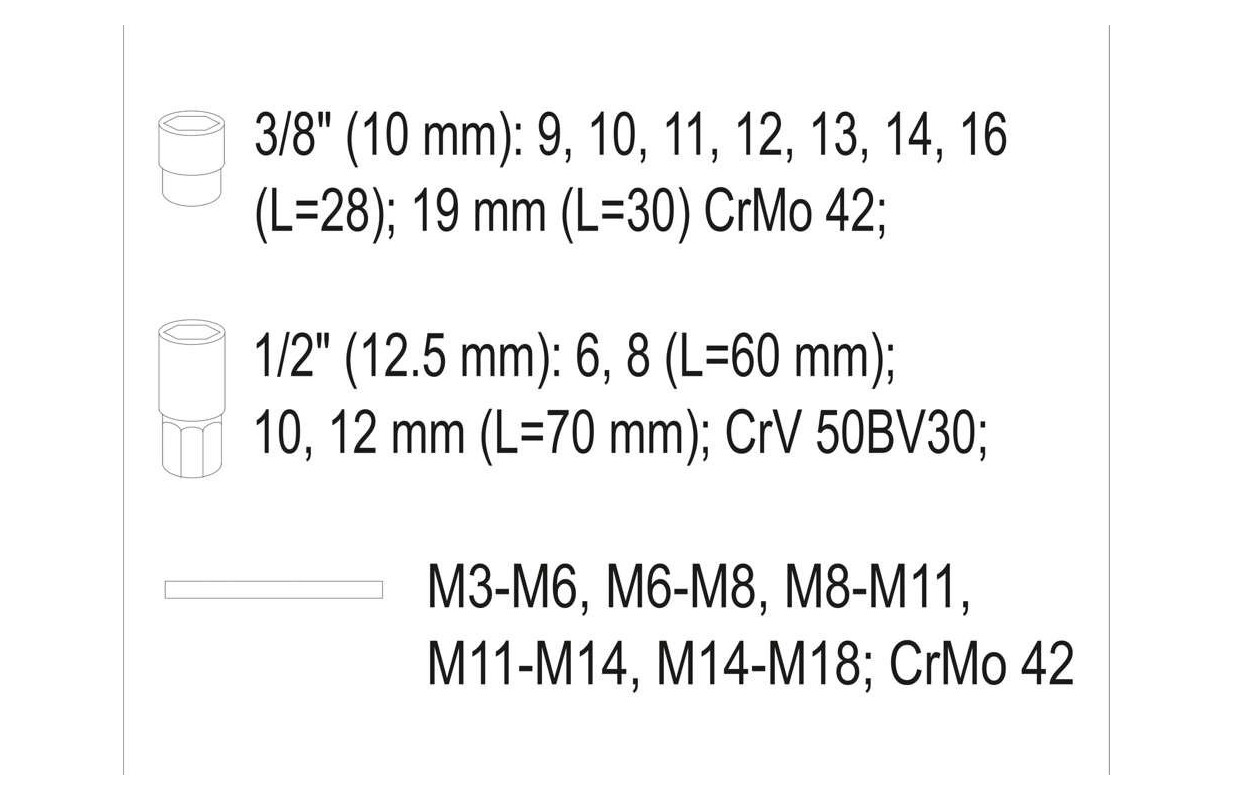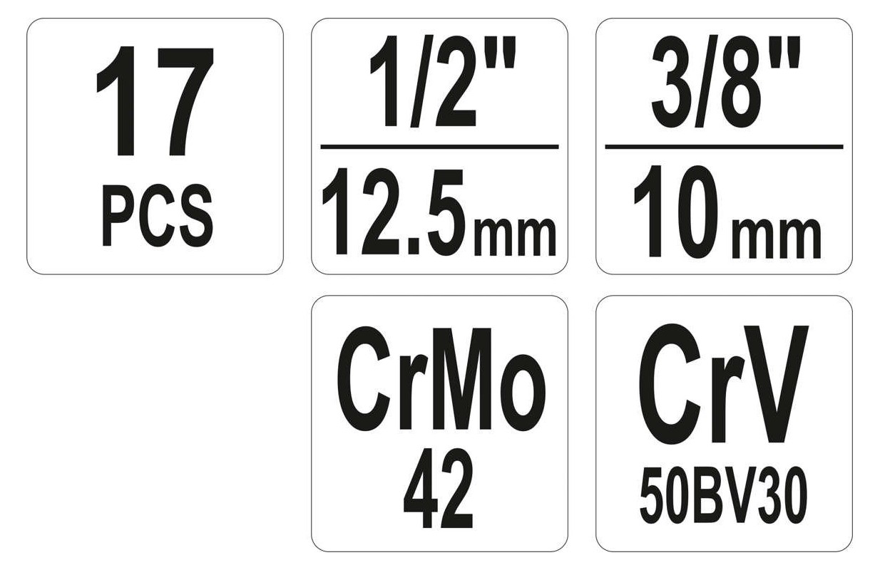 Головки для скрученных гаек 1/2" и 3/8" (набор 17пр.) Yato YT-06033