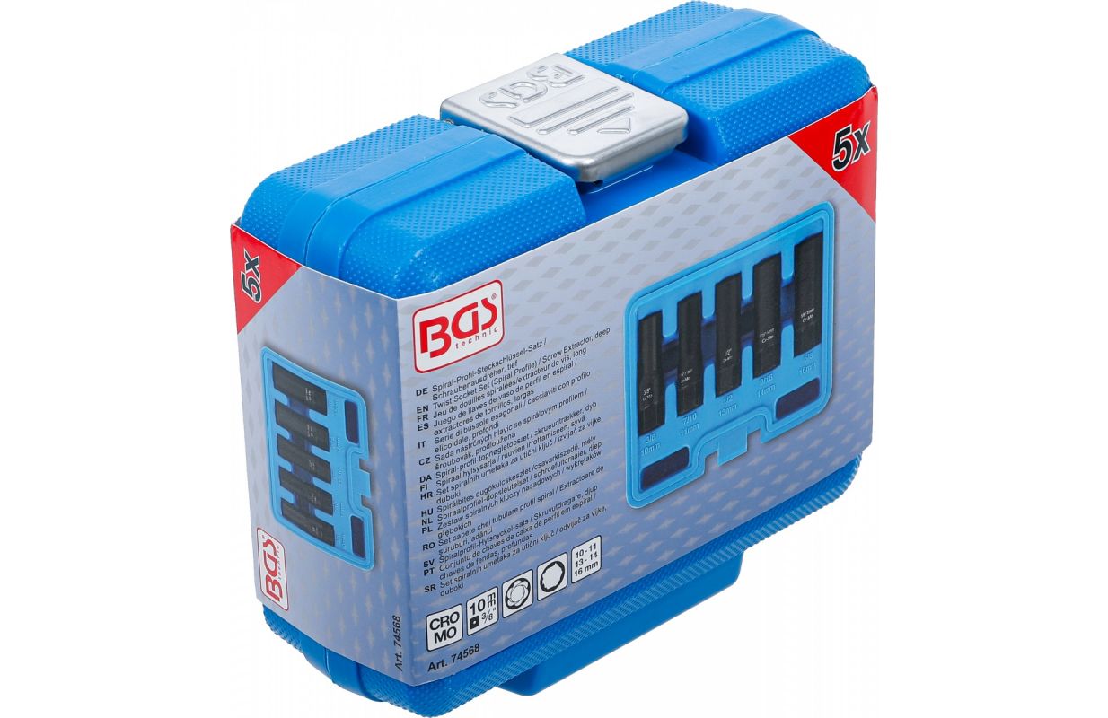 Набор торцевых головок (спиральный профиль) / Экстрактор для винтов, глубокий | Привод 10 мм (3/8") | 10–16 мм | 5 шт.