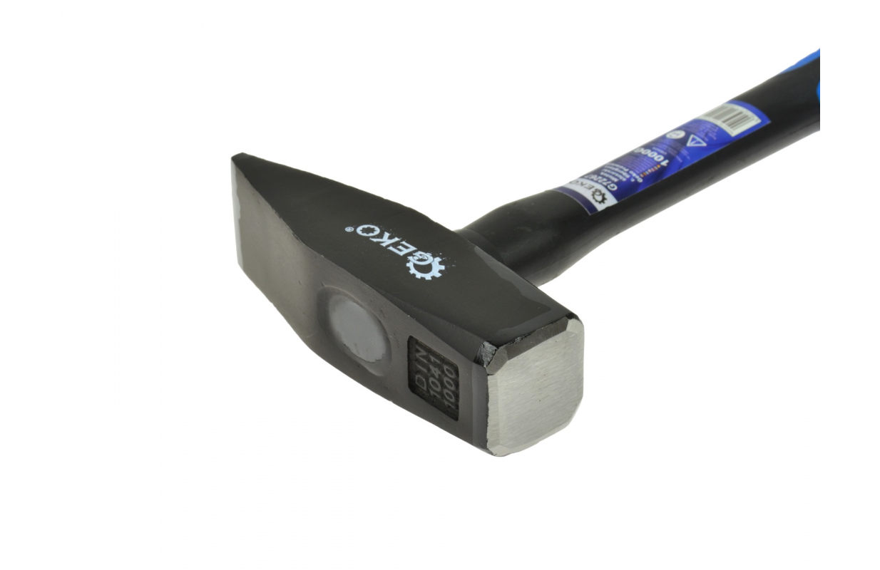 Слесарный молоток крепится на стеклопластиковую рукоятку. Эргономичный вал из стекловолокна, покрытый термопластичной резиной.