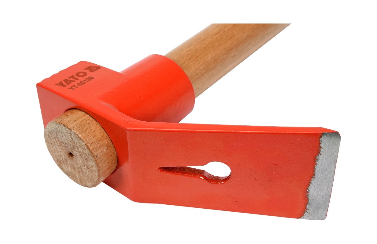 Обуч кованный из качественной стали, закаленный. Лезвие, расположенное перпендикулярно оси вала и паза, позволяет резать материал аналогично работе долотом. Таран прямоугольной формы предназначен для забивания гвоздей или клиньев, ломающих твердые предметы, например. Материалы. В верхней части имеется отверстие для втягивания гвоздей. Лезвие предварительно отшлифовано и готово к точной заточке. Поверхность отшлифована и покрыта лаком. Устанавливается на круглой ударной поверхности, клинуйącym хвостовик из бука.