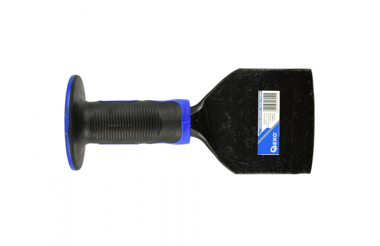 Кладочный резак с крышкой для защиты руки от ударов. Изготовлен из инструментальной стали CrV с шестигранным поперечным сечением 26 мм и шириной захвата 100 мм. Он имеет эргономичную двухкомпонентную рукоятку для надежного захвата инструмента. Предназначен для ковки, разрушения и дробления твердых строительных материалов, таких как кирпич, бетонные блоки и т. Д.
