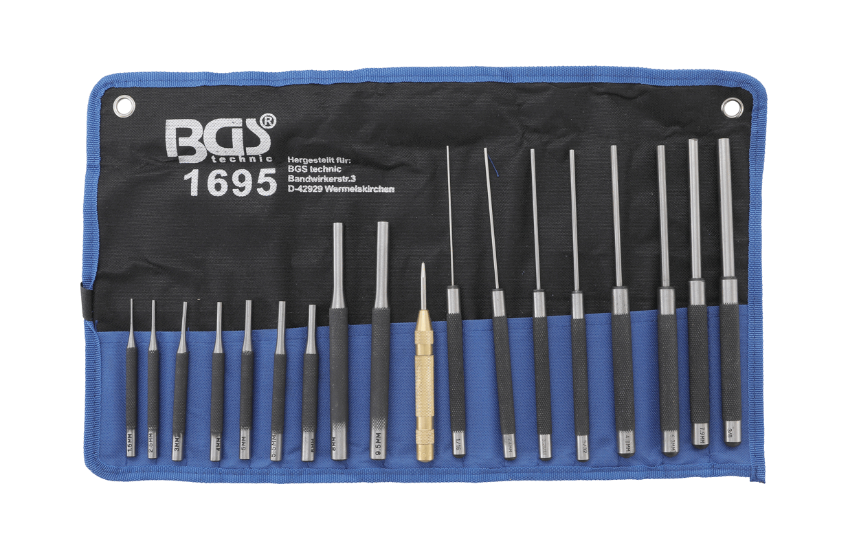 • 8 пробойников, длина 200 мм, 1,5 - 2,5 - 3,0 - 4,0 - 5,0 - 6,0 - 8,0 - 9,5 мм