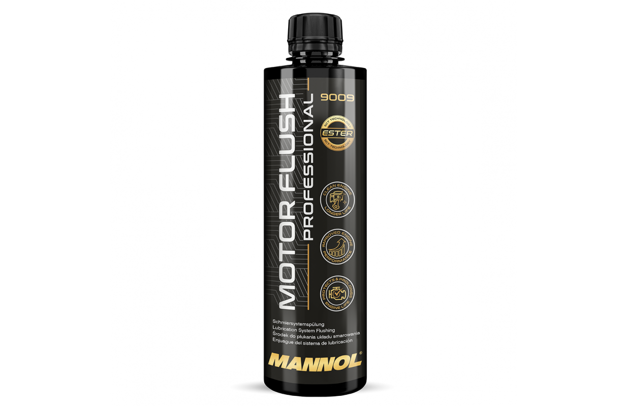 MANNOL Motor Flush Professional — специальный очиститель, предназначенный для удаления отложений, грязи, шлама и продуктов износа с деталей двигателя, включая самые труднодоступные части масляной системы. Содержит синтетические эфиры.