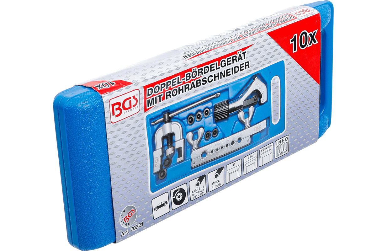 Комплект инструментов для двойной развальцовки с резаком для труб | 10 шт. (70221)