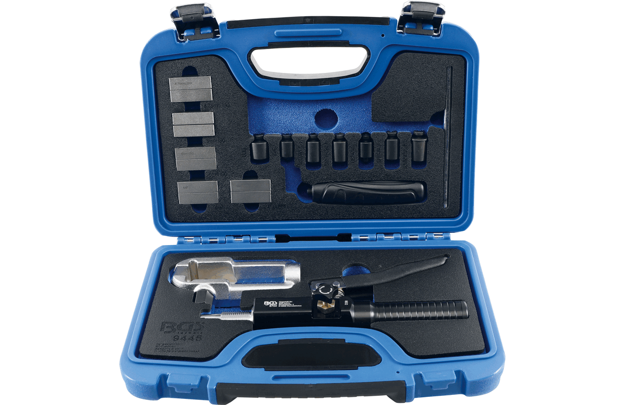 включает в себя штампы и адаптеры различных размеров для работы на развальцовке трубок тормозных магистралей, трансмиссионных линий и магистралей кондиционирования воздуха.