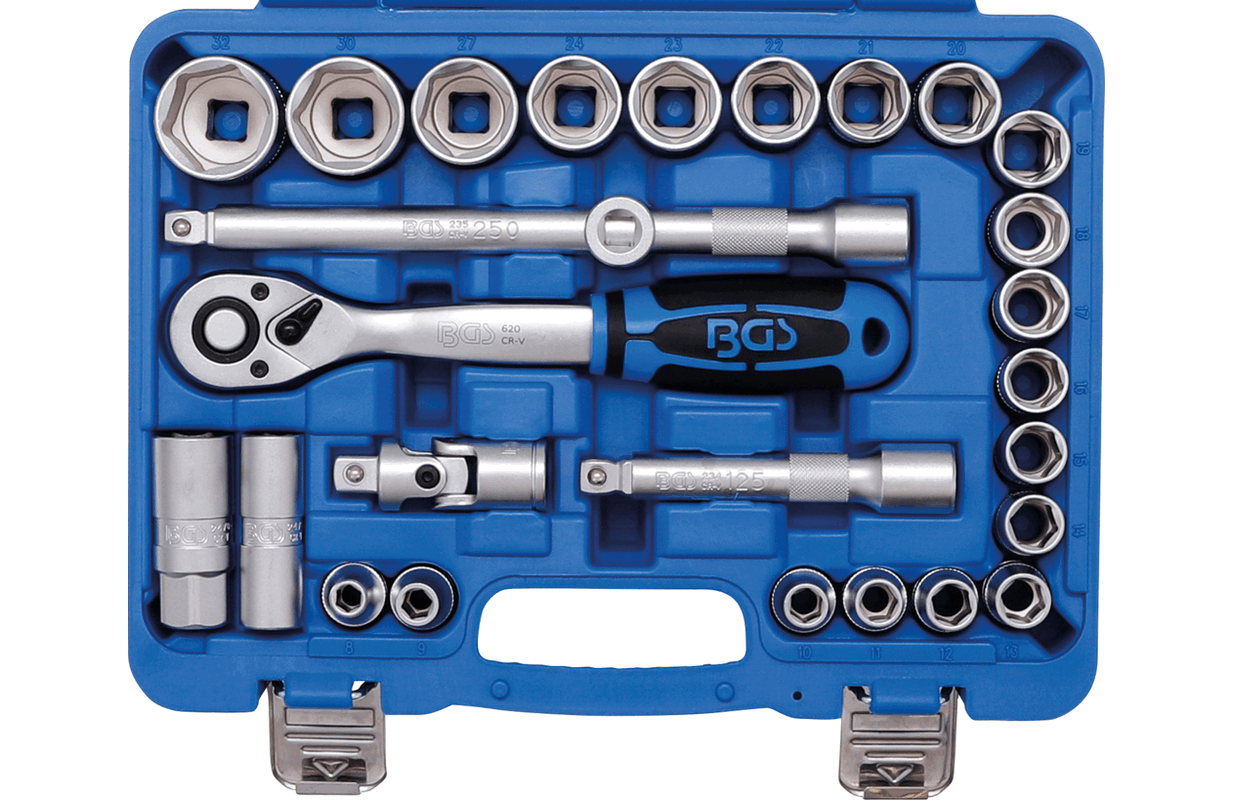• 20 головок Pro-Torque®, шестигранник: размер 8 – 9 – 10 – 11 – 12 – 13 – 14 – 15 – 16 – 17 – 18 – 19 – 20 – 21 – 22 – 23 – 24 – 27 – 30 – 32 мм