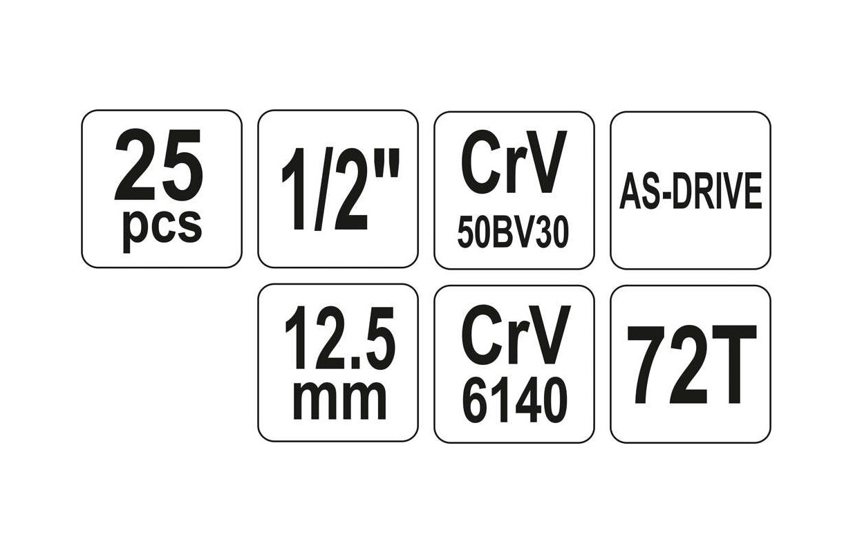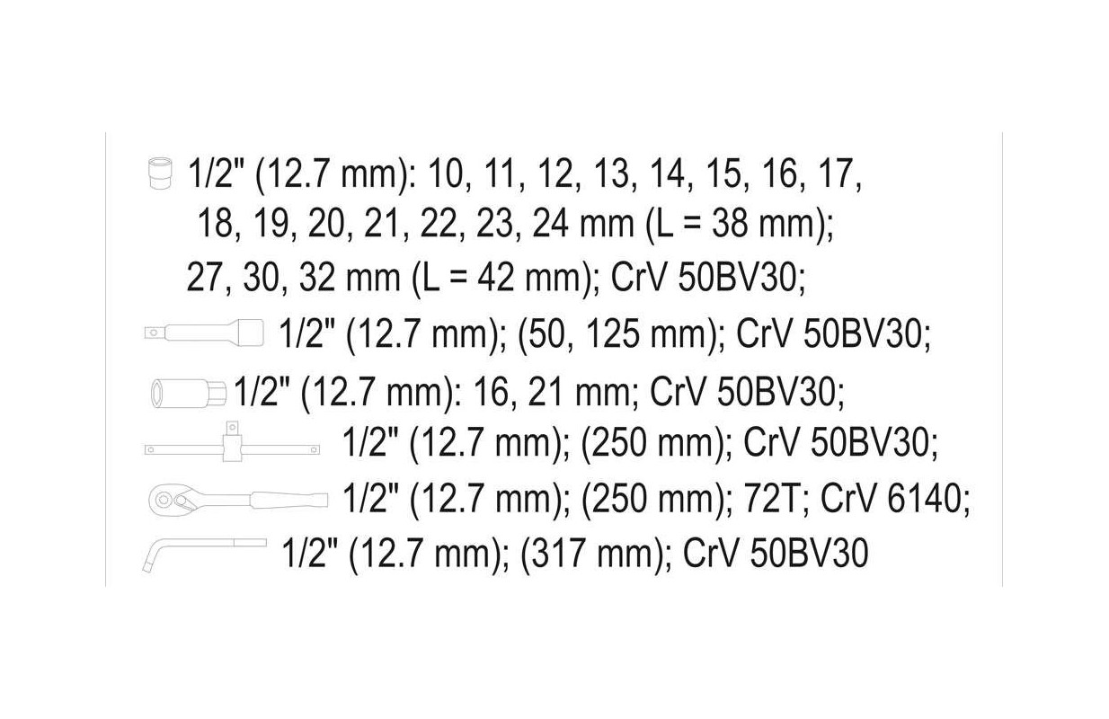 Набор торцевых головок 12,5 мм (1/2") | 10-32 мм | 25 шт. (YT-12671)