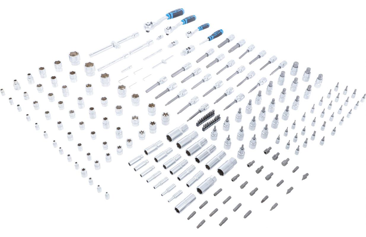 1 реверсивная трещотка | тонкий зуб | 6,3 мм (1/4 дюйма) 13 розеток, шестигранник | Привод 6,3 мм (1/4") | 4, 4,5, 5, 5,5, 6, 7, 8, 9, 10, 11, 12, 13, 14 мм 7 розеток, шестигранник, глубокий | Привод 6,3 мм (1/4") | 4. 5, 6, 7, 8, 9, 10 мм 5 розеток, E-тип | Привод 6,3 мм (1/4") | Е4, Е5, Е6, Е7, Е8 2 удлинителя | 6,3 мм (1/4 дюйма) | 50 мм, 100 мм 1 раздвижная ручка | Внешний квадрат 6,3 мм (1/4 дюйма) 1-битный адаптер с удерживающим шариком | Привод 6,3 мм (1/4") | внутренний шестигранник 6,3 мм (1/4 дюйма) 1 карданный шарнир | 6,3 мм (1/4 дюйма) 1 реверсивная трещотка | тонкий зуб | 10 мм (3/8 дюйма) 10 розеток, шестигранник | Привод 10 мм (3/8") | 10, 11, 12, 13, 14, 15, 16, 17, 18, 19 мм 6 розеток, шестигранник, глубокий | Привод 10 мм (3/8") | 10, 11, 12, 13, 14, 15 мм 6 розеток, E-type | Привод 10 мм (3/8") | Е10, Е11, Е12, Е14, Е16, Е18 1 удлинитель | 10 мм (3/8 дюйма) | 150 мм 1-битный адаптер с удерживающим шариком | Привод 10 мм (3/8") | Внутренний шестигранник 8 мм (5/16") 1 скользящий адаптер для удлинителей | Внешний квадрат 12,5 мм (1/2 дюйма) 1 карданный шарнир | 10 мм (3/8 дюйма) 1 головка свечи зажигания, шестигранник | Привод 10 мм (3/8") | 18 мм 1-битный адаптер с удерживающим шариком | Привод 12,5 мм (1/2") | внутренний шестигранник 10 мм (3/8") 1 реверсивная трещотка | тонкий зуб | 12,5 мм (1/2 дюйма) 17 розеток, шестигранник | Привод 12,5 мм (1/2") | 10, 11, 12, 13, 14, 15, 16, 17, 18, 19, 20, 21, 22, 24, 27, 30, 32 мм 5 розеток, шестигранник, глубокий | Привод 12,5 мм (1/2") | 16, 17, 18, 19, 22 мм 2 розетки, E-тип | Привод 12,5 мм (1/2") | Е20, Е24 2 удлинителя | 12,5 мм (1/2 дюйма) | 125 мм, 250 мм 1-битный адаптер с удерживающим шариком | Привод 12,5 мм (1/2") | Внутренний шестигранник 8 мм (5/16") 2 головки для свечей зажигания, шестигранник | Привод 12,5 мм (1/2") | 16,21 мм 1 карданный шарнир | 12,5 мм (1/2 дюйма) 8-битные сокеты | Привод 6,3 мм (1/4") | T-Star (для Torx) T8, T9, T10, T15, T20, T25, T27, T30 8-битные сокеты | Привод 6,3 мм (1/4") | T-Star с защитой от несанкционированного доступа (для Torx) T8, T9, T10, T15, T20, T25, T27, T30 3-битные сокеты | Привод 6,3 мм (1/4") | крестообразный слот PH0, PH1, PH2 3-битные сокеты | Привод 6,3 мм (1/4") | крестообразный слот PZ0, PZ1, PZ2 4-битные сокеты | Привод 6,3 мм (1/4") | внутренний шестигранник 3, 4, 5, 6 мм 4-битные сокеты | Привод 6,3 мм (1/4") | паз SL 4, 5,5, 6,5, 7 мм 7-битные сокеты | Привод 12,5 мм (1/2") | сплайн (для XZN) М5, М6, М8, М9, М10, М12, М14, М16 8-битные сокеты | 12,5 мм (1/2 дюйма) | внутренний шестигранник 5, 6, 7, 8, 10, 12, 14, 17 мм 8-битные сокеты | Привод 12,5 мм (1/2") | T-Star (для Torx) T27, T30, T40, T45, T50, T55, T60, T70 7-битные сокеты | длина 100 мм | Привод 12,5 мм (1/2") | сплайн (для XZN) | М5, М6, М8, М9, М10, М12, М14 8-битные сокеты | длина 100 мм | Привод 12,5 мм (1/2") | внутренний шестигранник 5, 6, 7, 8, 10, 11, 12, 13 мм 8-битные сокеты | длина 100 мм | Привод 12,5 мм (1/2") | T-Star (для Torx) T20, T25, T27, T30, T40, T45, T50, T55 1 ручка спиннера | Внешний квадрат 6,3 мм (1/4 дюйма) | 150 мм 3 бита | Привод 6,3 мм (1/4") | сплайн (для XZN) М5, М6, М8 5 бит | Привод 6,3 мм (1/4") | сплайн (для RIBE) М5, М6, М7, М8, М9 1 бит | Привод 6,3 мм (1/4") | T-Star с защитой от несанкционированного доступа (для Torx) T7 8 бит | Привод 6,3 мм (1/4") | TS-Star с защитой от несанкционированного доступа (для Torx) TS10, TS15, TS20, TS25, TS27, TS30, TS40, TS45 3 бита | Привод 6,3 мм (1/4") | T-Star (для Torx) T5, T6, T7 3 бита | длина 30 мм | Привод 8 мм (5/16") | паз SL 8, 10, 12 мм 2 бита | длина 30 мм | Привод 8 мм (5/16") | крестообразный паз PH3, PH4 2 бита | длина 30 мм | Привод 8 мм (5/16") | крестообразный слот PZ3, PZ4 5 бит | длина 30 мм | Привод 8 мм (5/16") | внутренний шестигранник 7, 8, 10, 12, 14 мм 6 бит | длина 30 мм | Привод 8 мм (5/16") | T-Star (для Torx) T40, T45, T50, T55, T60, T70 6 бит | длина 30 мм | Привод 8 мм (5/16") | T-Star с защитой от несанкционированного доступа (для Torx) T40, T45, T50, T55, T60, T70 4 гаечных ключа L-образного типа | внутренний шестигранник 1,27, 1,5, 2, 2,5 мм Технические да