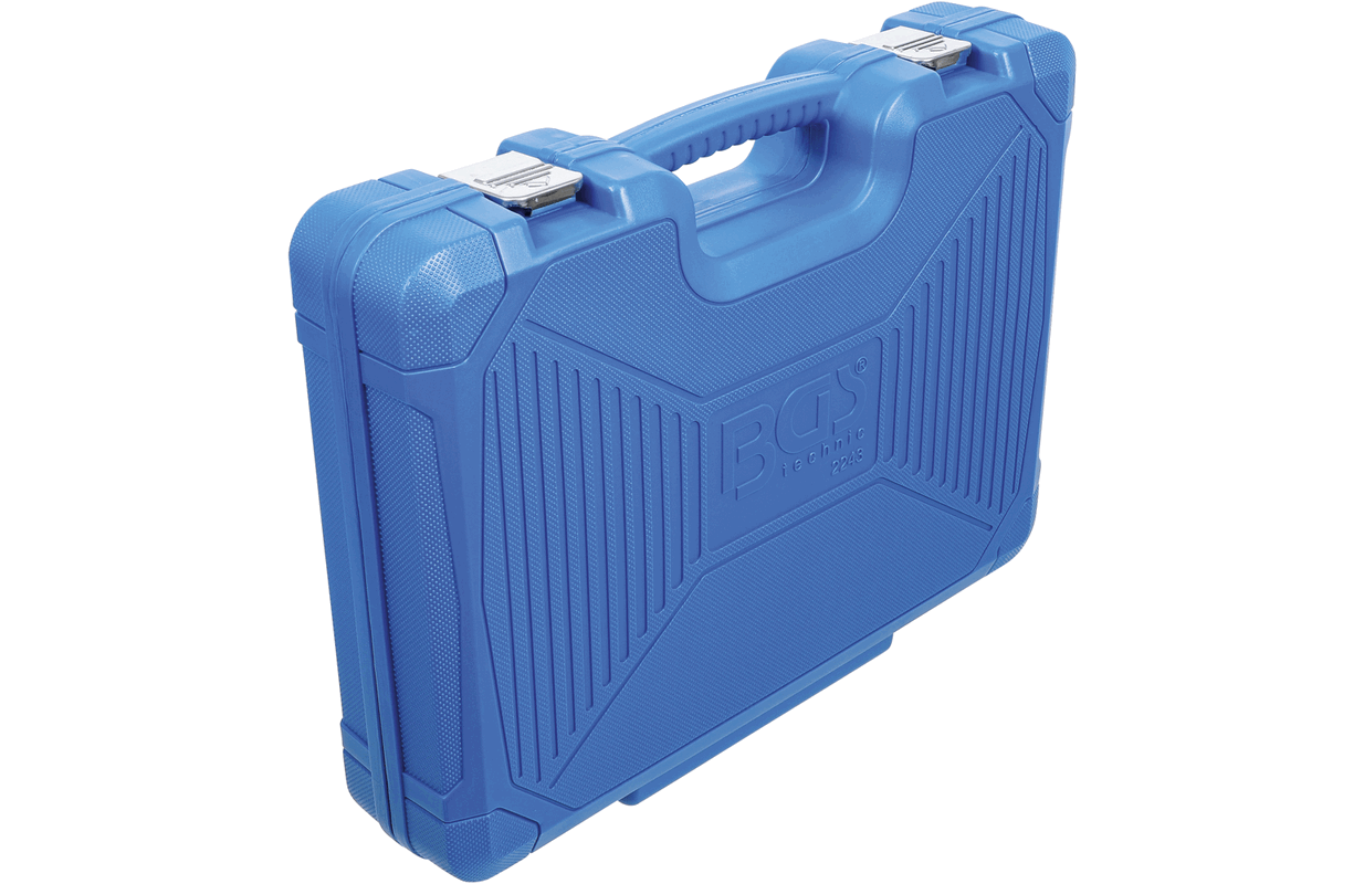 1 х реверсивная трещотка 1 удлинитель 125 мм 1 удлинитель 250 мм 1 переходник с выдвижной ручкой для удлинителя 12,5 мм (1/2 дюйма) 1 x держатель для бит 8 мм 1 * карданный шарнир 2 свечных ключа SW 16 + 21 17 вставок для торцевых ключей SW 10 - 11 - 12 - 13 - 14 - 15 - 16 - 17 - 18 - 19 - 20 - 21 - 22 - 24 - 27 - 30 - 32 мм 5 вставок под торцевой ключ, глубокие, размер 16–17–18–19–22 мм 2 x вставки для торцевых ключей E-профиль SW E20 - E24 24 биты с шестигранным приводом 8 мм