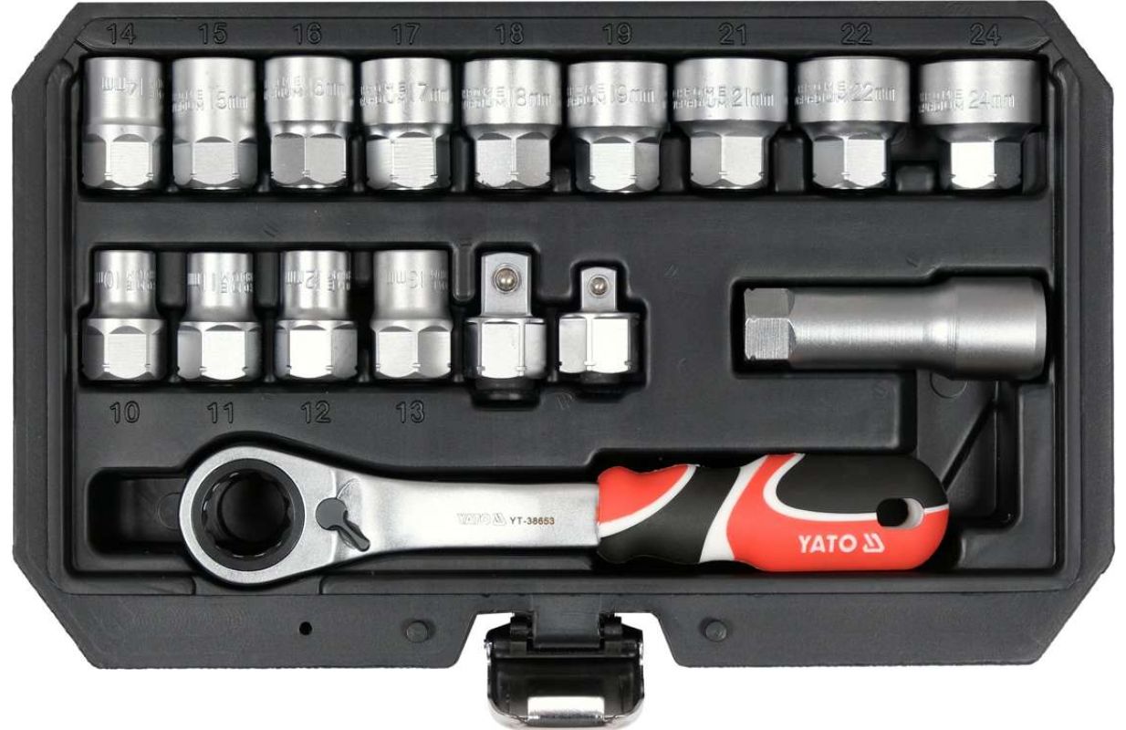 Набор из 17 элементов, предназначенный для работы в автосервисах, механических, промышленных и бытовых службах. изготовлен из прочной CrV стали