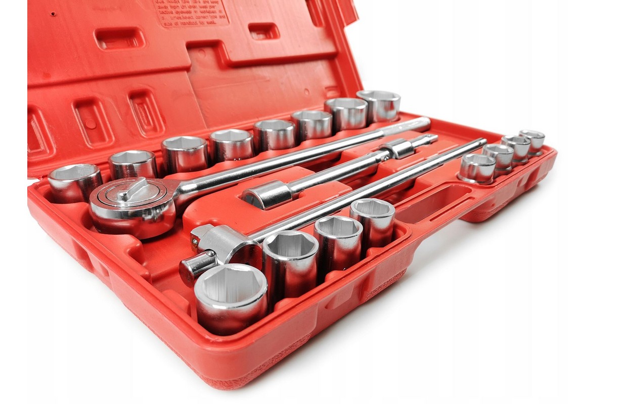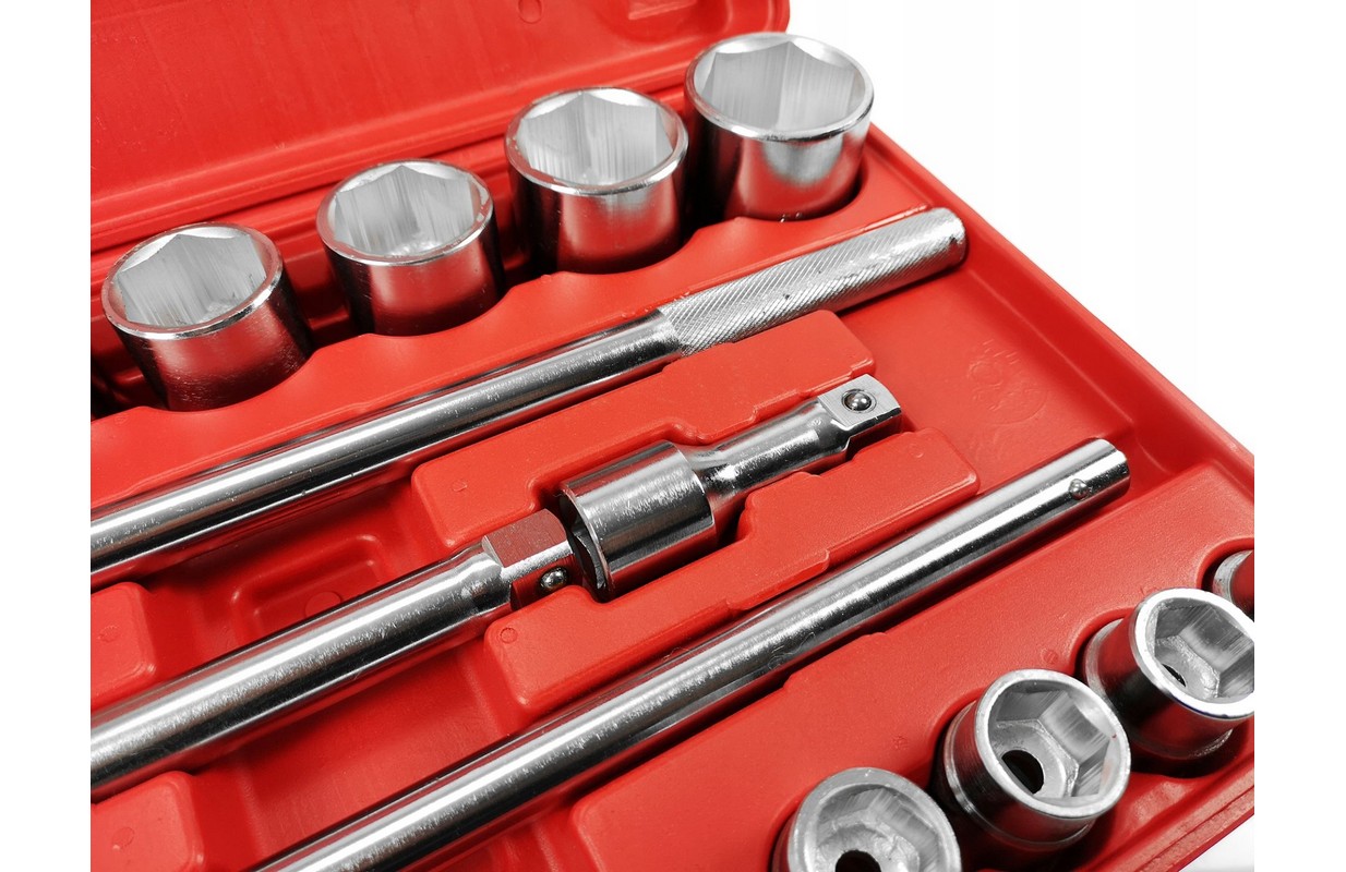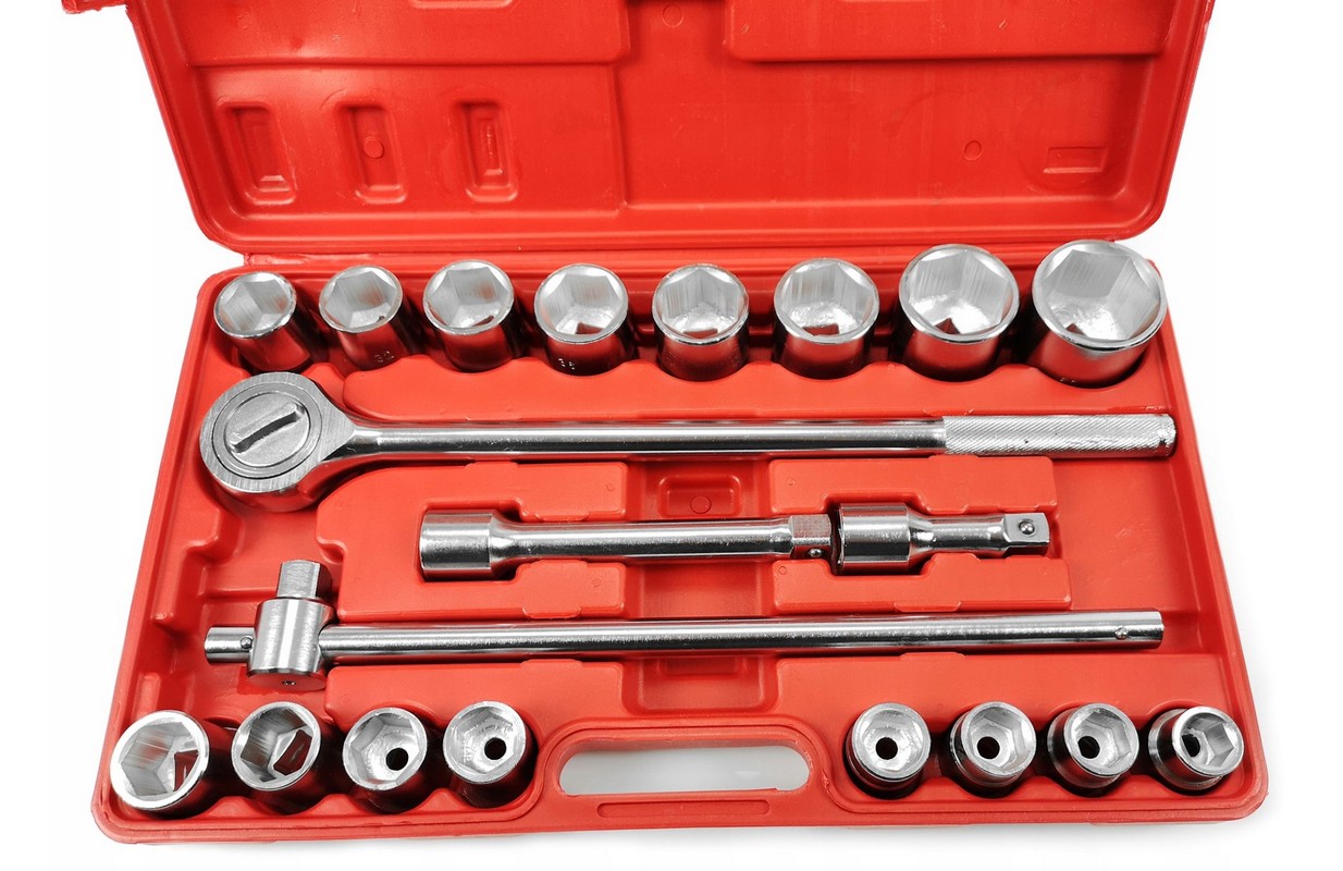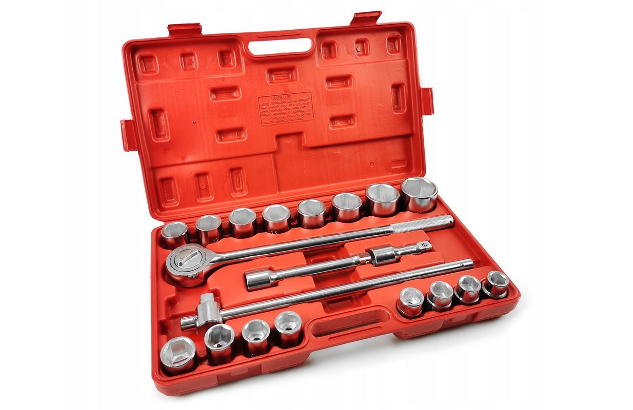 Профессиональный набор торцевых ключей 3/4". Идеально подходят для больших грузовиков и сельскохозяйственных машин, изготовлены из прочных материалов, что выражается в их долговечности. Незаменимы в каждой автомастерской, головки такого размера помогут при ремонте грузовиков или сельскохозяйственных машин. Идеально подходит для откручивания или затягивания больших винтов. Все головки и адаптеры находятся в практичном кейсе. Набор состоит из 21 предмета.