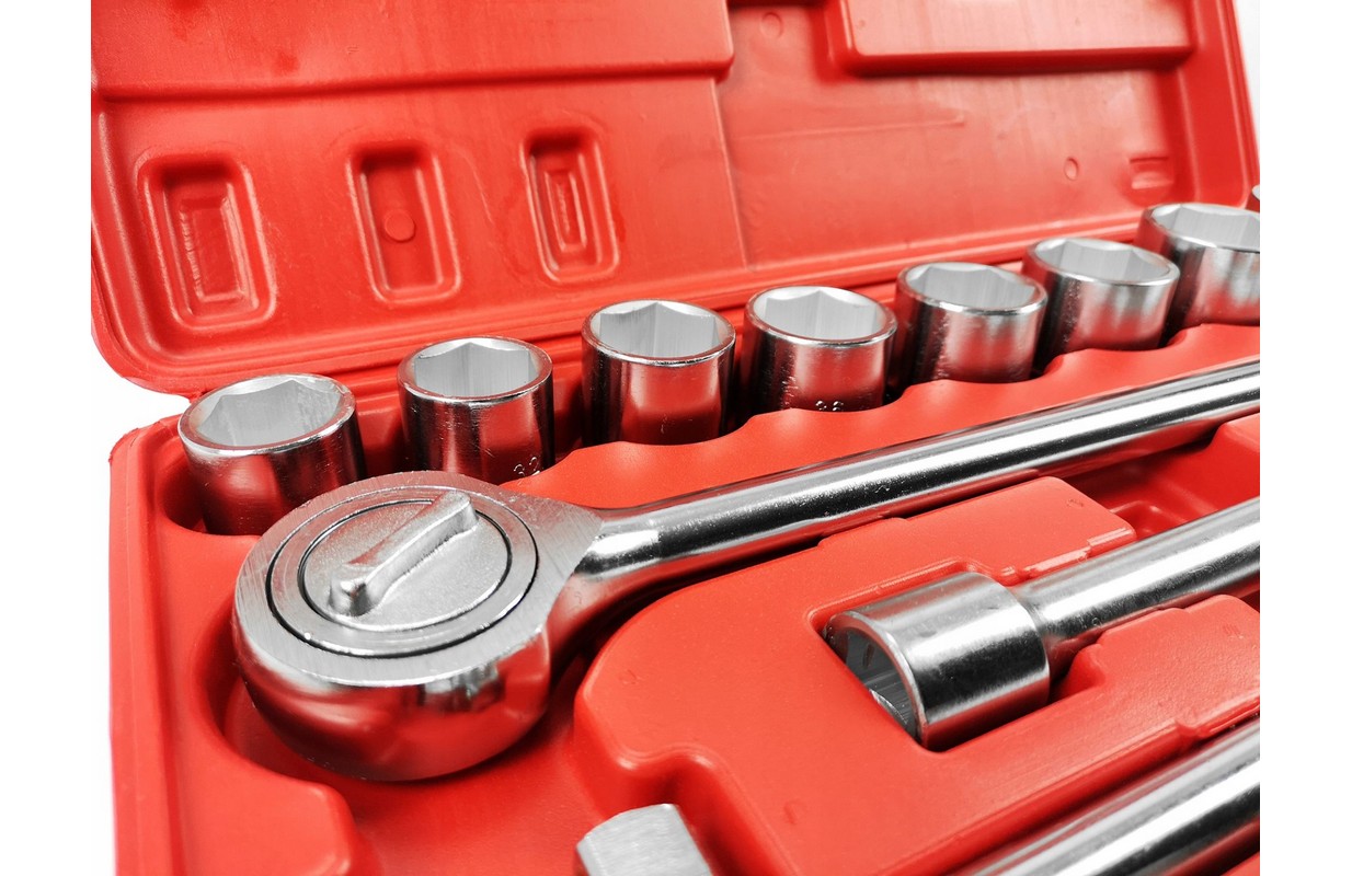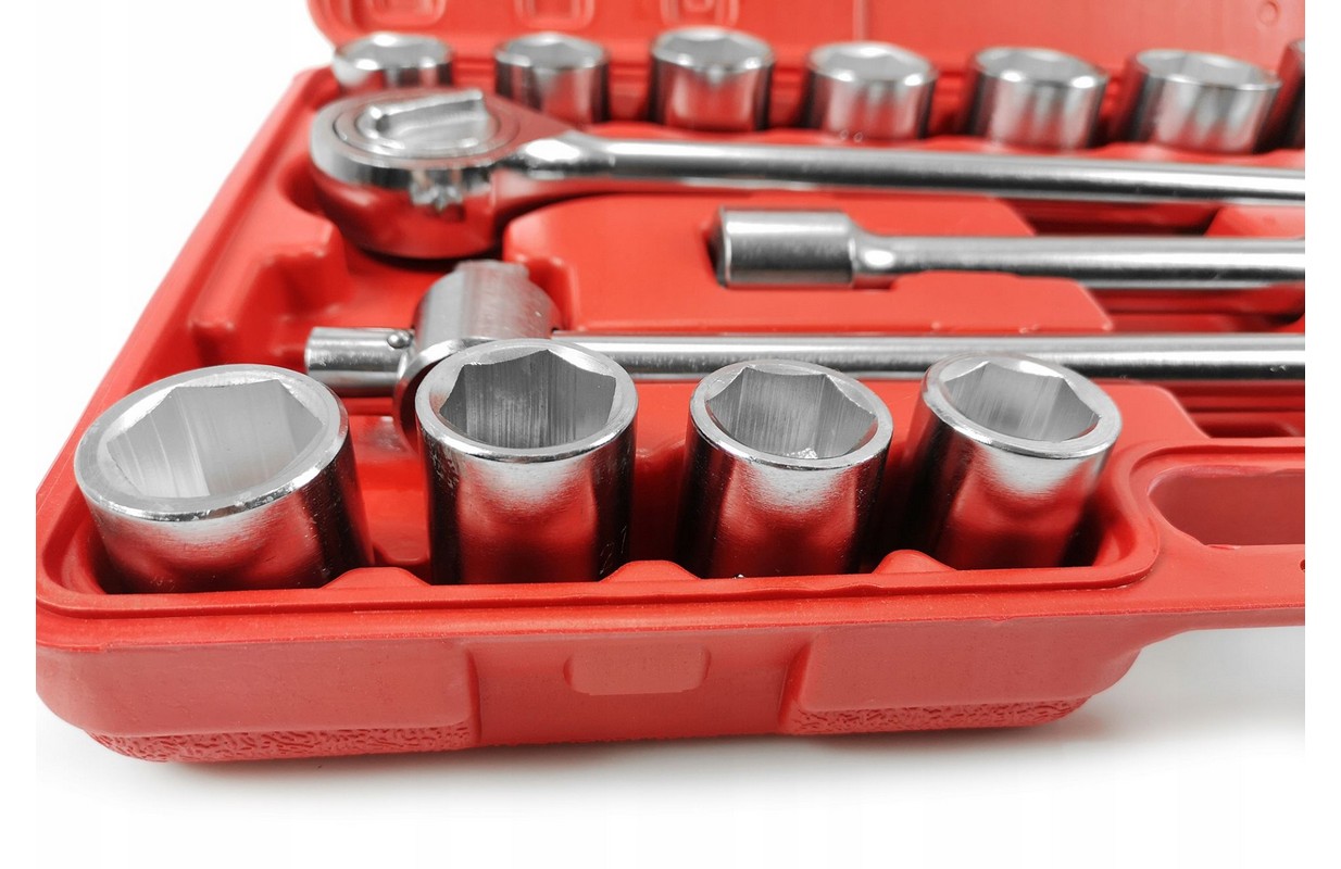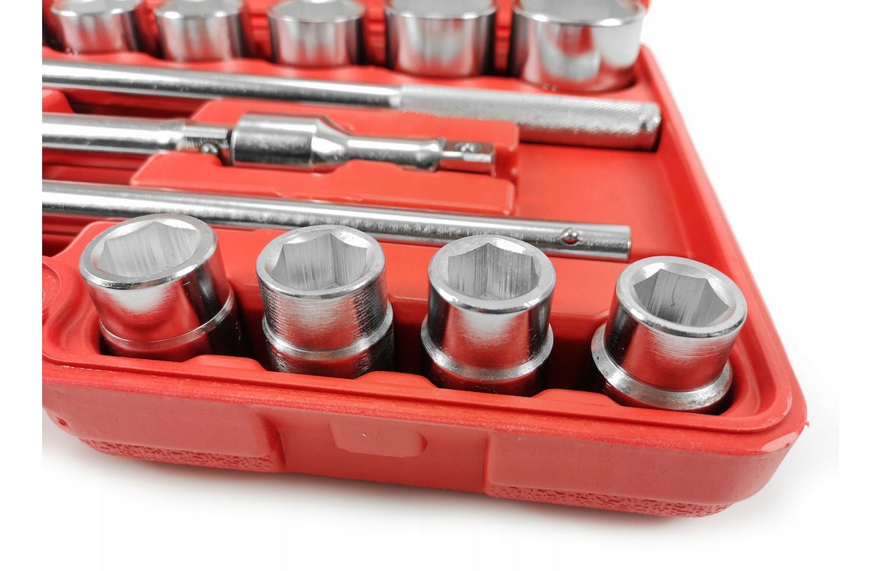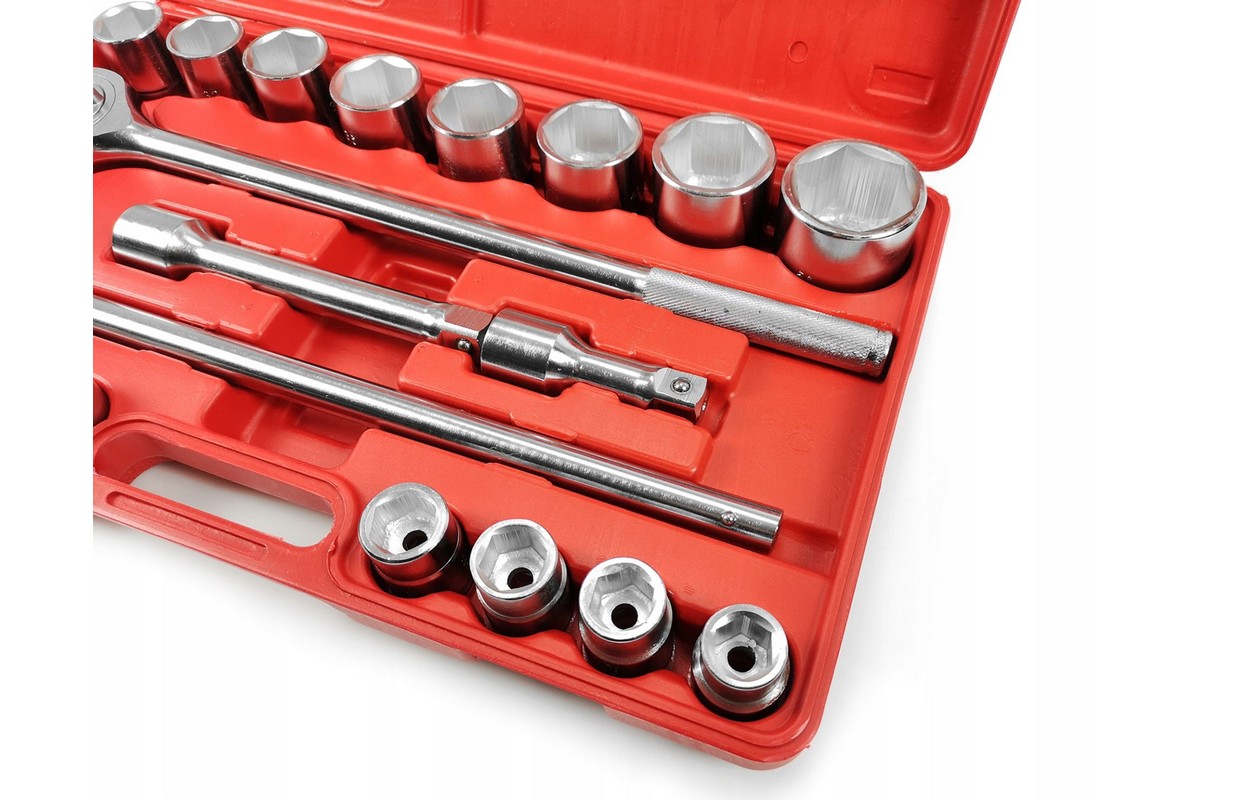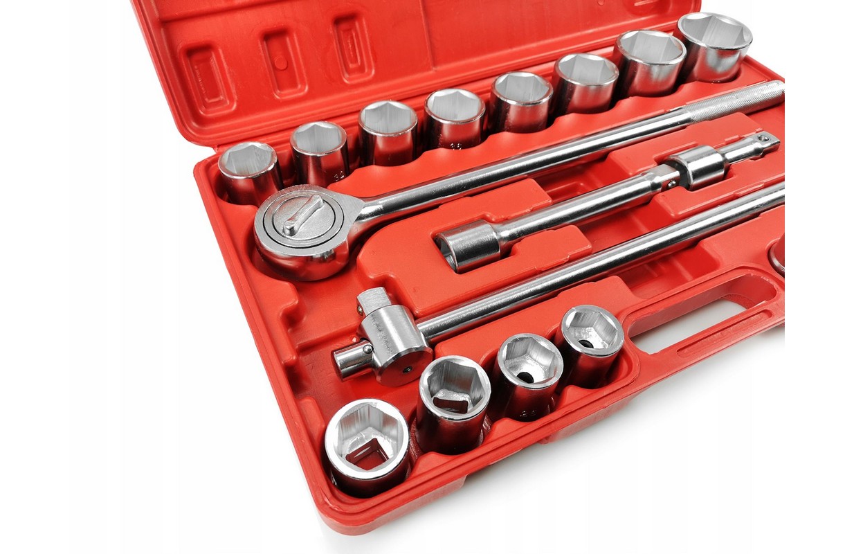 Профессиональный набор торцевых ключей 3/4". Идеально подходят для больших грузовиков и сельскохозяйственных машин, изготовлены из прочных материалов, что выражается в их долговечности. Незаменимы в каждой автомастерской, головки такого размера помогут при ремонте грузовиков или сельскохозяйственных машин. Идеально подходит для откручивания или затягивания больших винтов. Все головки и адаптеры находятся в практичном кейсе. Набор состоит из 21 предмета.