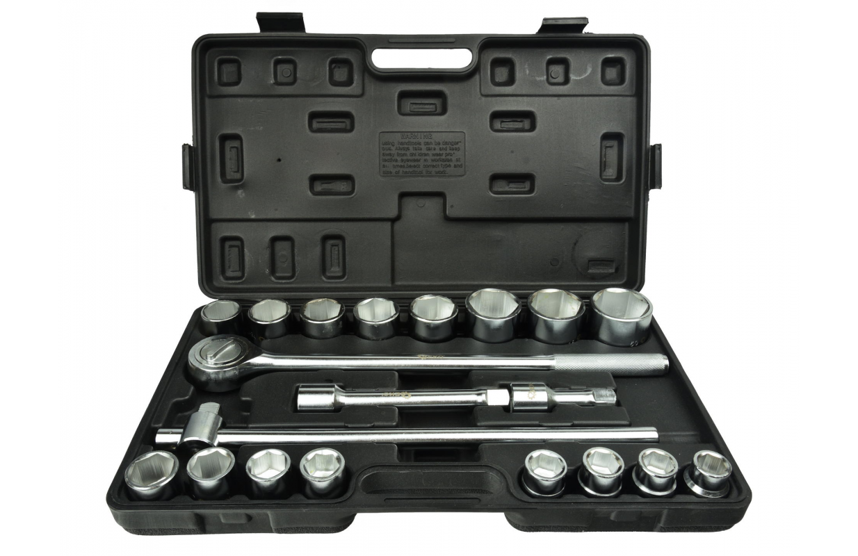 Набор торцевых ключей торговой марки GEKO состоит из 21 предмета. В набор входит набор торцевых ключей 3/4", Т-образная рукоятка (3/4"), трещотка (3/4") и набор удлинителей (3/4"). Все компоненты набора изготовлены из высококачественной хром-ванадиевой стали CrV. Весь набор помещен в удобный кейс из прочного пластика.