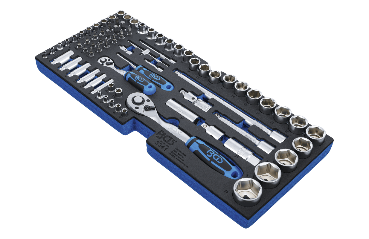 • 1 реверсивная трещотка с мелкими зубьями, с быстросъемной вставкой,