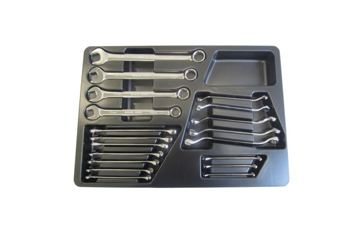 Габаритные размеры лотка 535 х 370 х 45 мм 14 шт. Комбинированный ключ 7, 8, 10, 12, 13, 14, 15, 16, 17, 18, 19, 21, 22, 24 мм