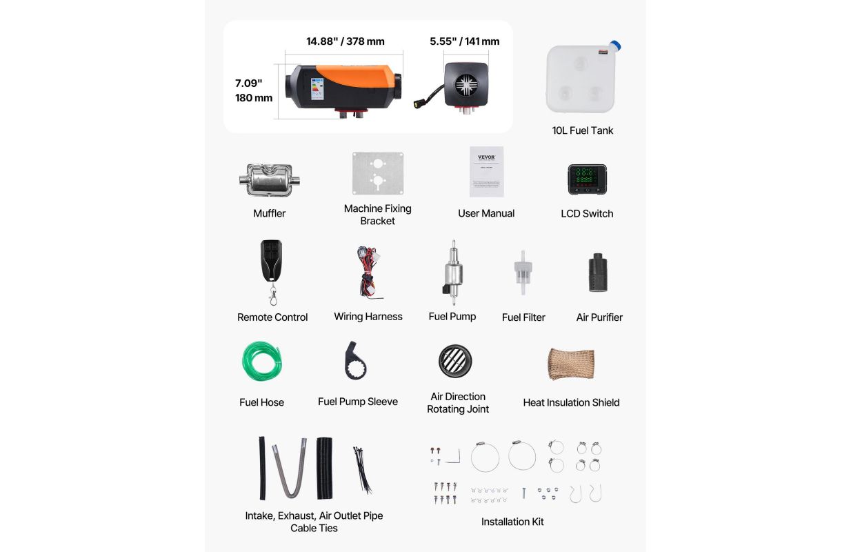 Дизельный парковый обогреватель эффективно работает на высотах до 3000 метров. Компактный и простой в установке, он обеспечивает непрерывное тепло в условиях высокогорья или холодного климата, гарантируя комфорт независимо от места расположения.