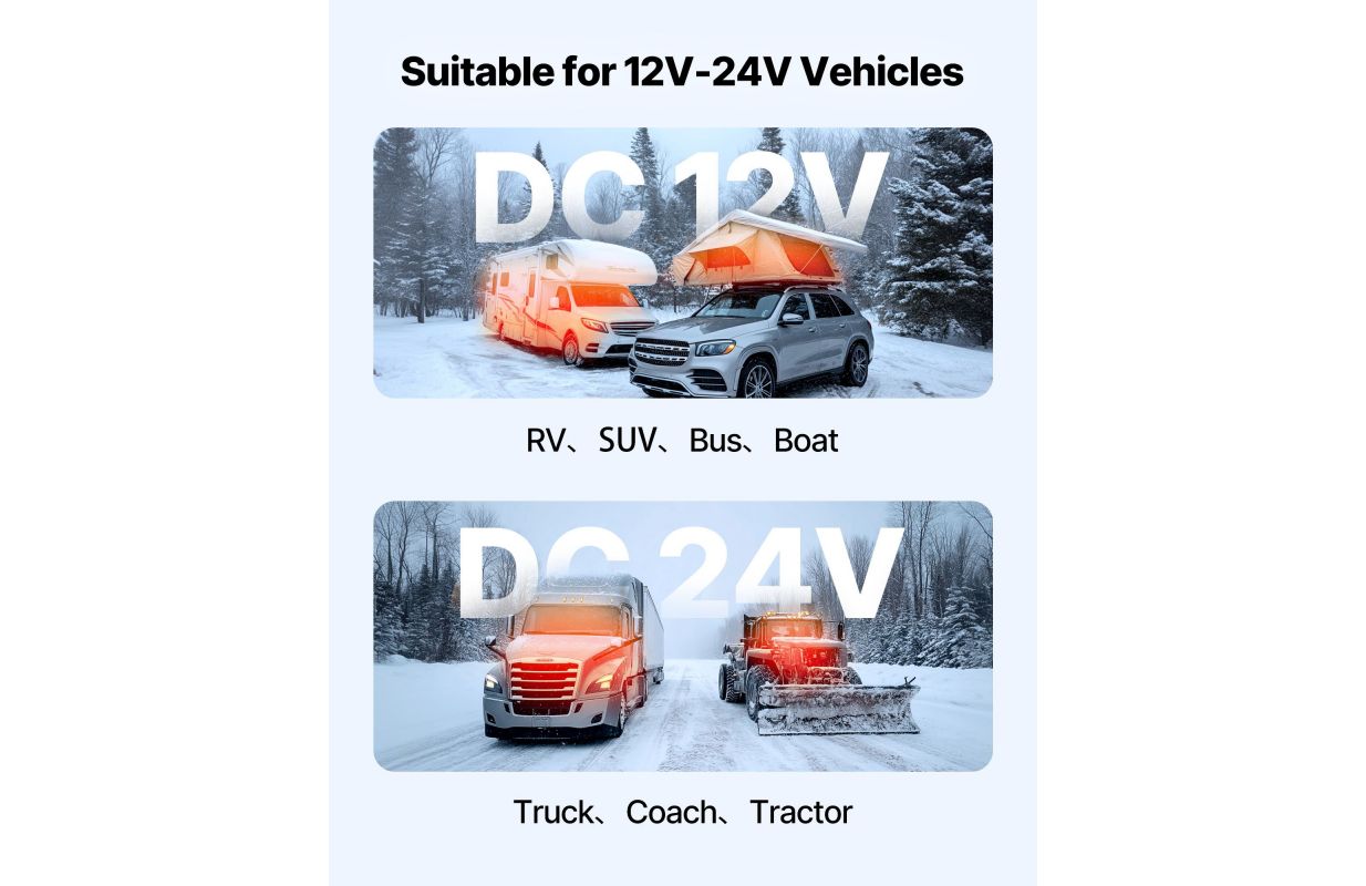 Портативный дизельный обогреватель оснащен пультом дистанционного управления на 30 метров для предварительного нагрева снаружи автомобиля, поддерживая комфортную температуру внутри и предотвращая образование инея. ЖК-экран позволяет регулировать температуру в диапазоне от 46 до 97℉ в соответствии с вашими потребностями.