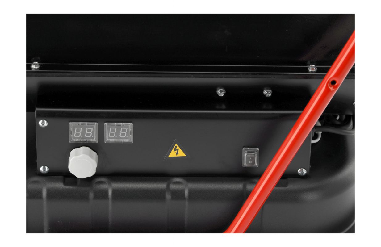 тепловая мощность: 30 кВт Топливо: дизельное топливо / керосин Расход воздуха: 750 м³/ч Расход топлива: 2,4 л/ч Давление воздуха: 0,31 бар Бак: 38 л Вес: 19,2 кг Степень защиты: IPX4 мощность двигателя: 230 Вт Габариты: 855x470x588 мм Длина кабеля: 1,3 м напряжение: 220-240 В/50 Гц