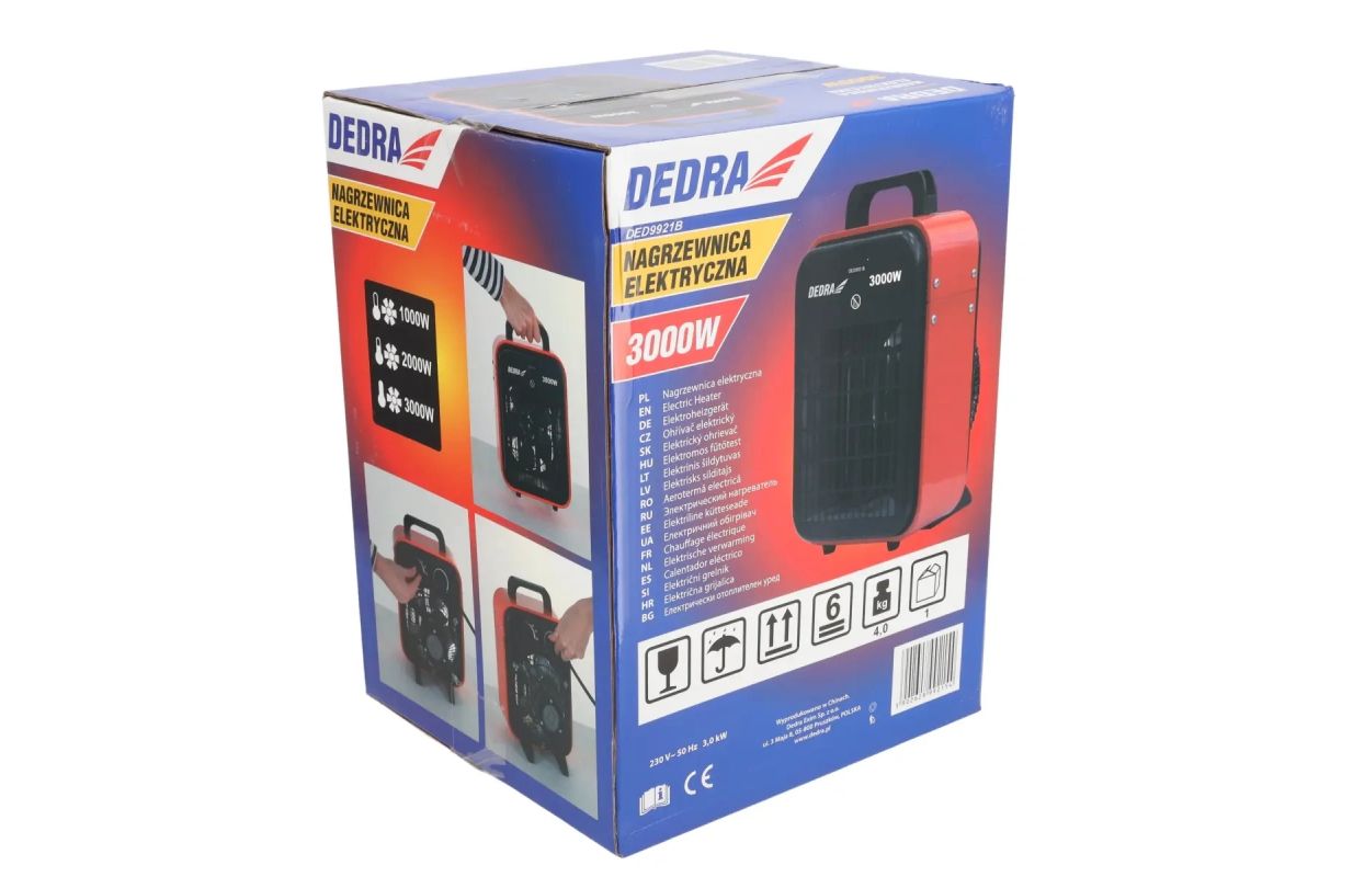 Электронагреватель DED9921B имеет встроенный датчик температуры, регулятор мощности и термостат. При установке ручки температуры на минимум прибор можно использовать как вентилятор без функции обогрева. Обогреватель легко транспортировать благодаря небольшому весу, малым габаритам и удобной ручке.