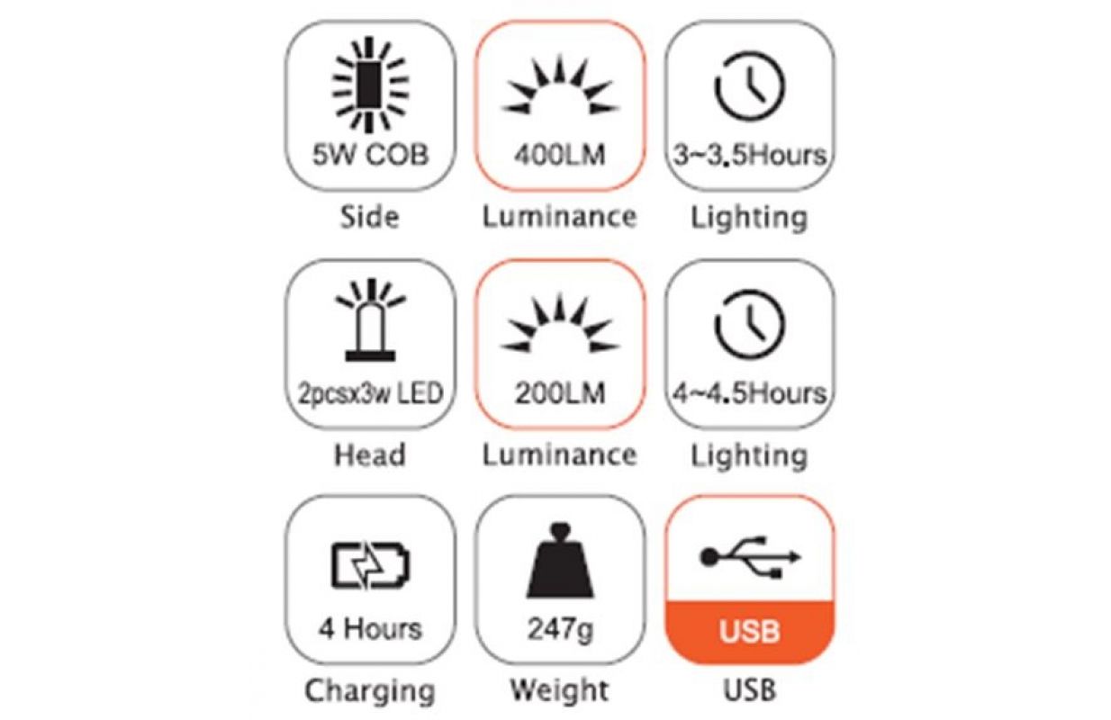 Тип лампы : 2шт 3Вт LED (головка) + 5W COB LED (боковая)