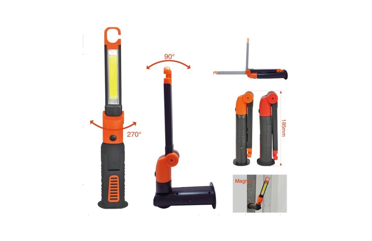 3Вт COB светодиодный рабочий свет 220лм Материалы: АБС Тип светодиода: 3 Вт COB посередине Режимы: вкл-выкл Аккумулятор: 3,7 В 1800 мАч (включая) Сильный магнит на дне, держатель вращения на 180 °, легкий корпус может поворачиваться вверх и вниз на 90 ° и горизонтальное вращение на 270 °. Крючок сверху. Включите провод USB 100 см "