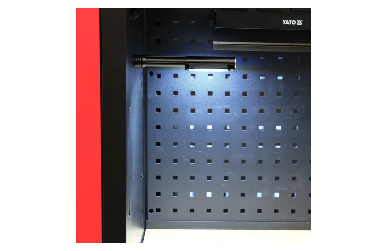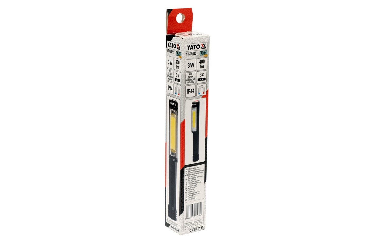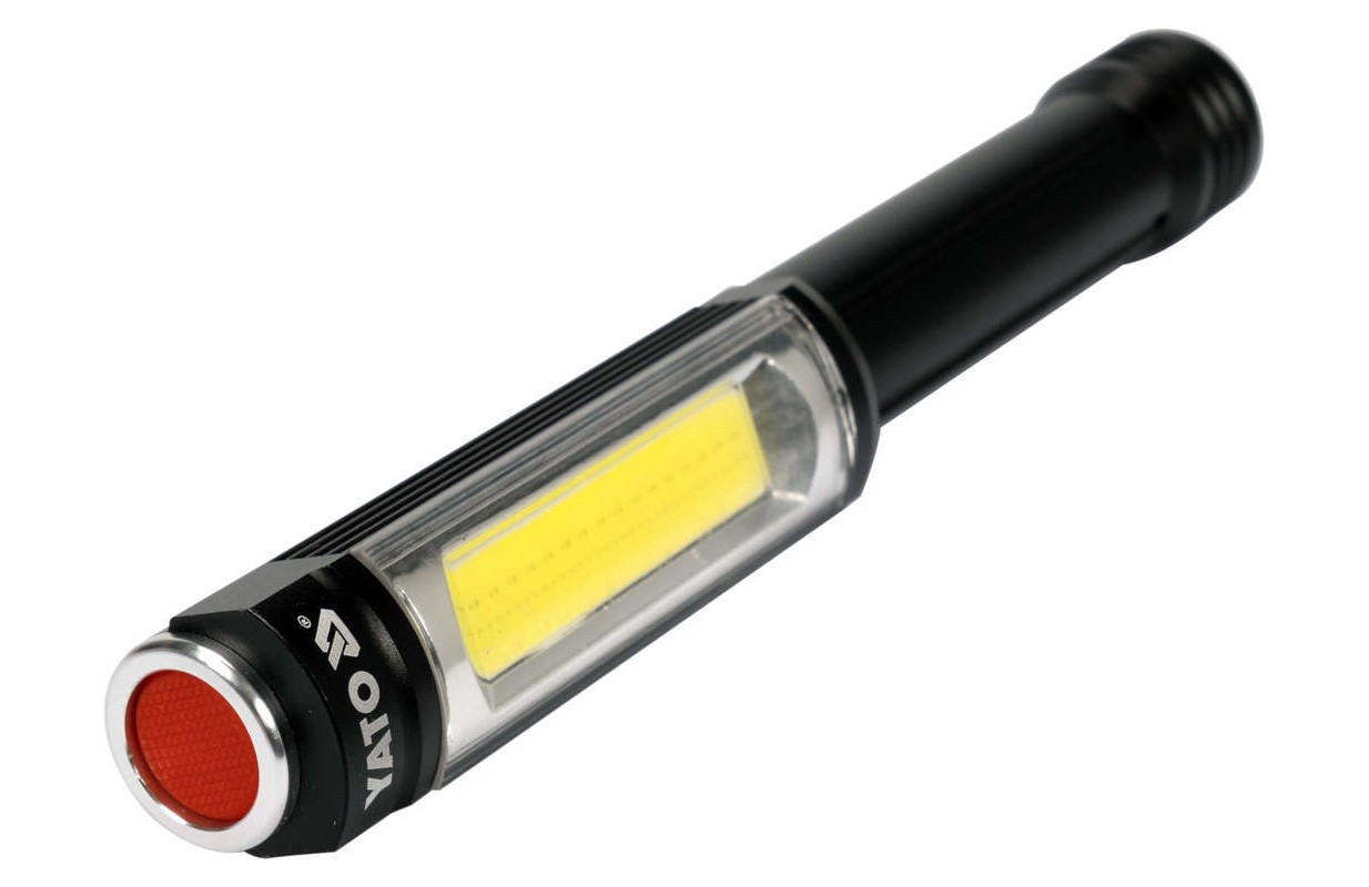 Алюминиевый инспекционный фонарь YATO с 3 режимами работы , включая красную сигнальную лампу. COB LED обеспечивает сильный рассеянный свет 400 лм . Дополнительным преимуществом является магнитное основание.
