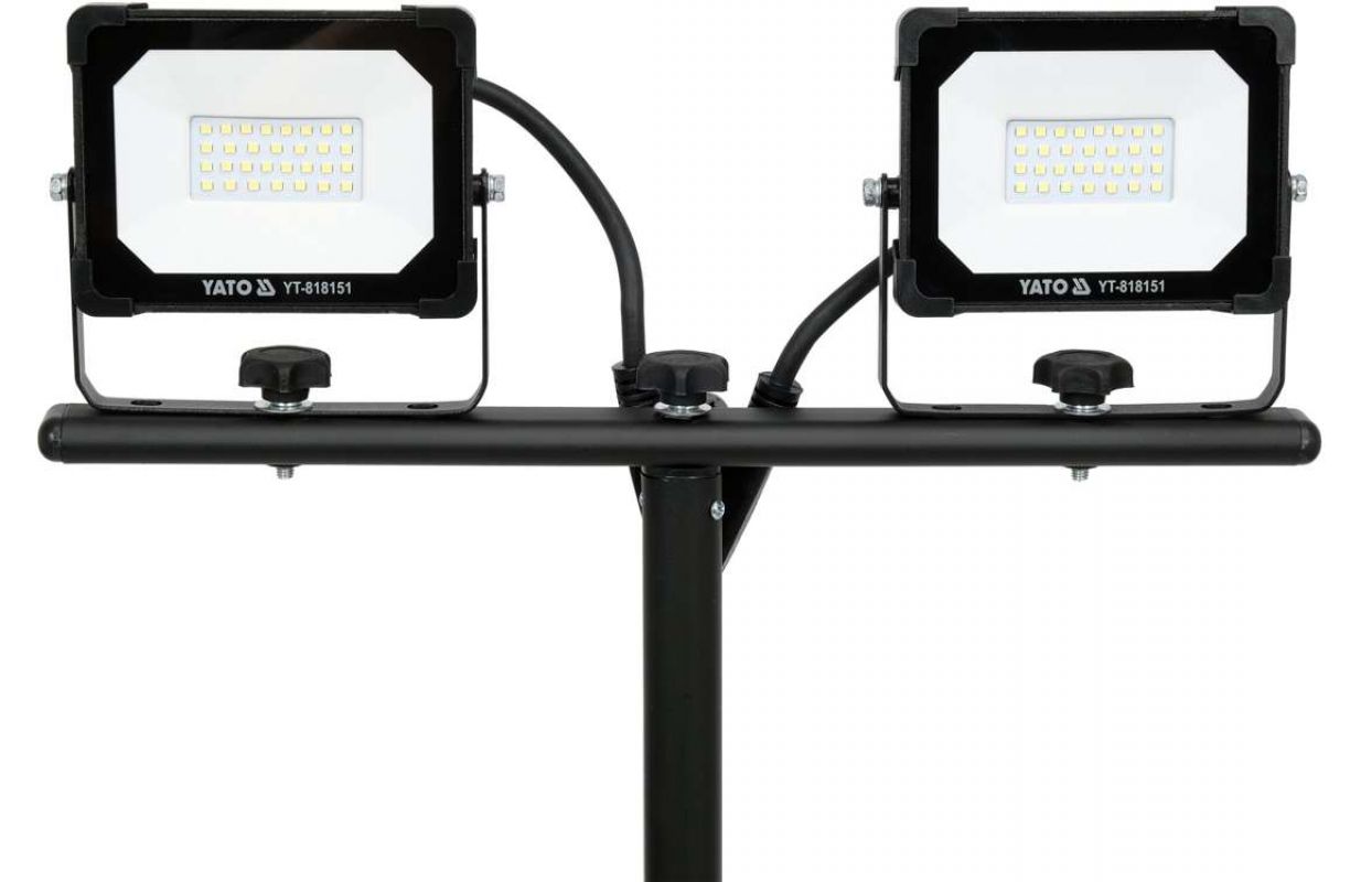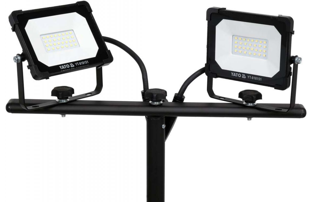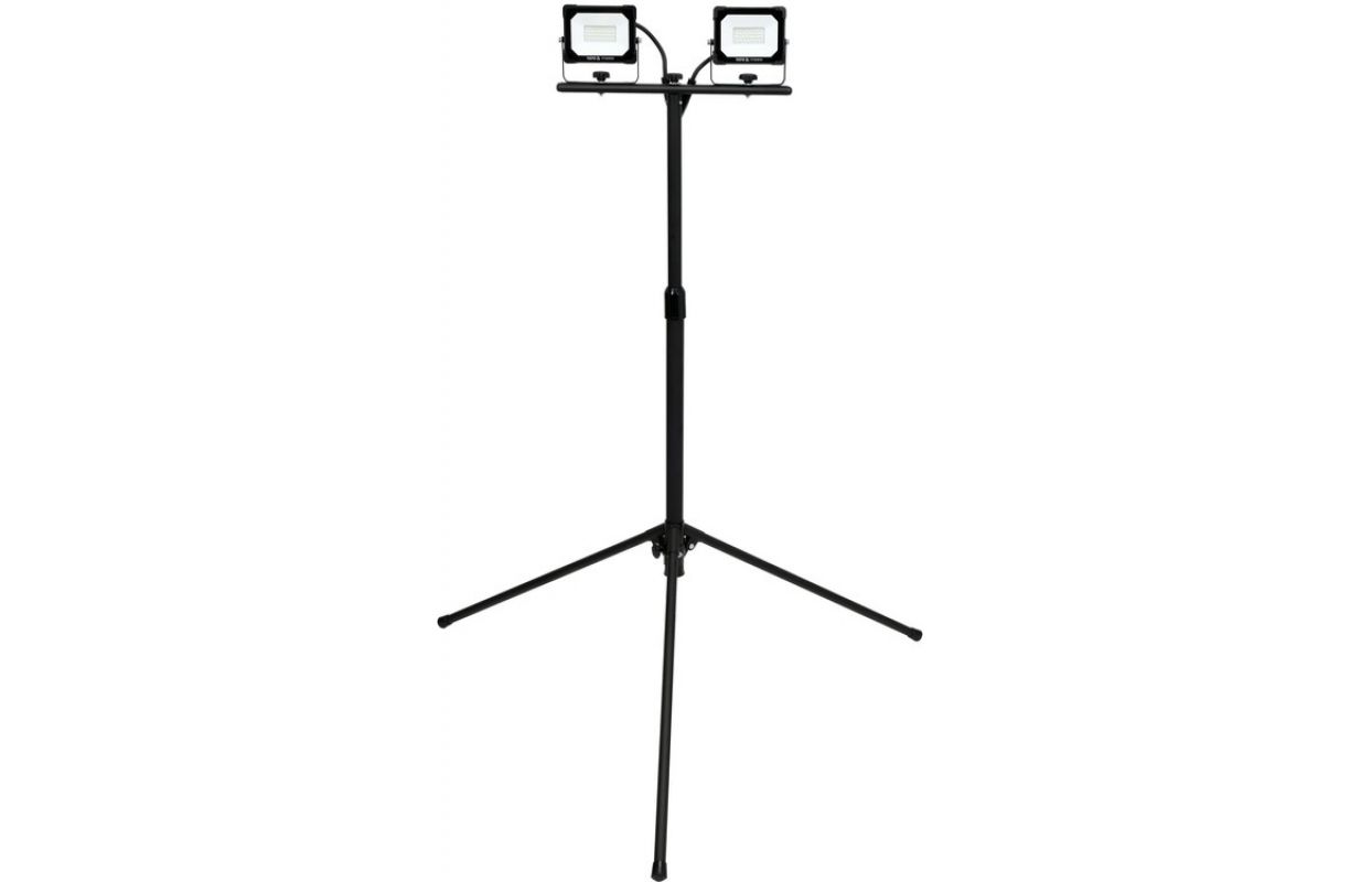 Два плоских прожектора с эффективными светодиодными диодами SMD размещены на устойчивой, регулируемой стойке. Класс герметичности IP65 позволяет использовать освещение в уличных условиях. мощность: 40 Вт (2 x 20 Вт)