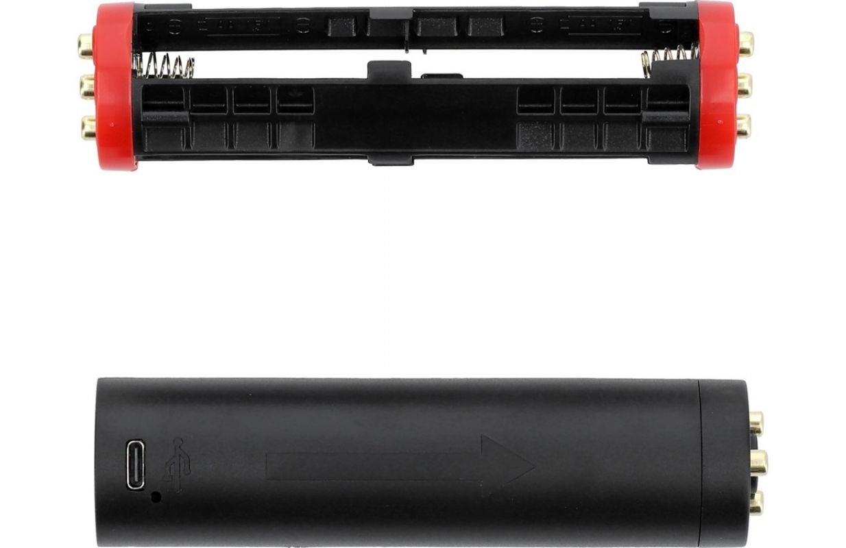 Li-Ion 5000 мАч, аккумулятор 3,7 В 6 батареек АА 1,5 В Время работы литий-ионного аккумулятора: до 8 ч Время зарядки Li-Ion: 6 ч Индикатор заряда батареи на кнопке включения/выключения (зеленый и красный свет)