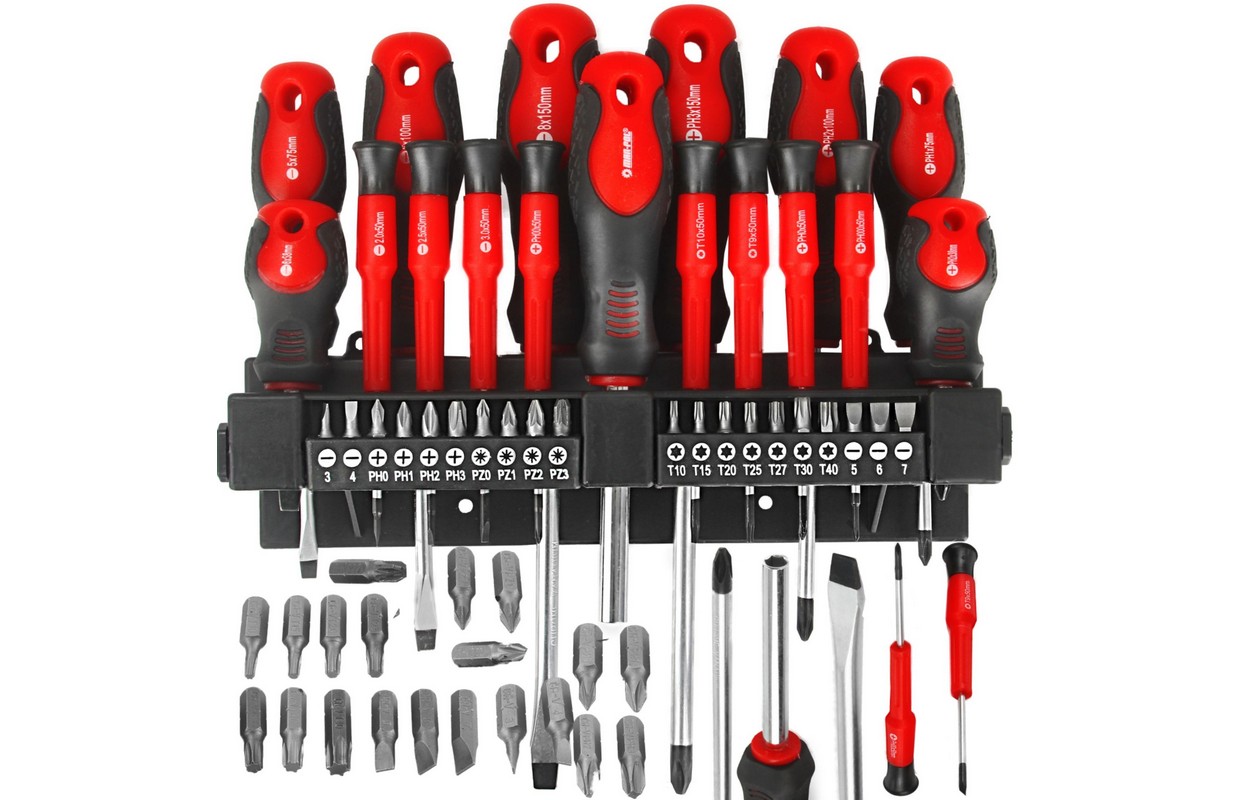 плоские отвертки + крестовые отвертки разных размеров + биты + прецизионные отвертки