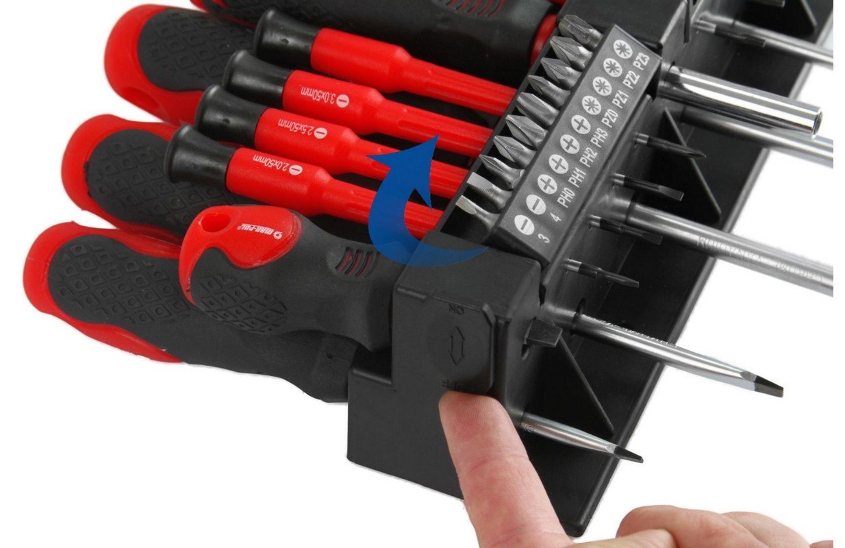 • Наконечники отверток намагничены, что значительно облегчает работу
