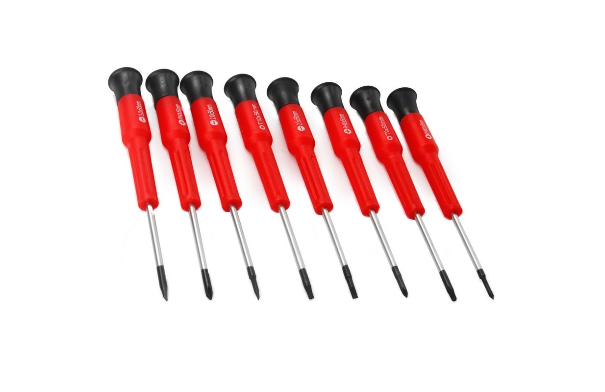 8 прецизионных отверток - 2,0x50 мм, 2,5x50 мм, 3,0x50 мм, T9,50 мм, PH00x50 мм, PH0x50 мм, PH1x50 мм, T10x50