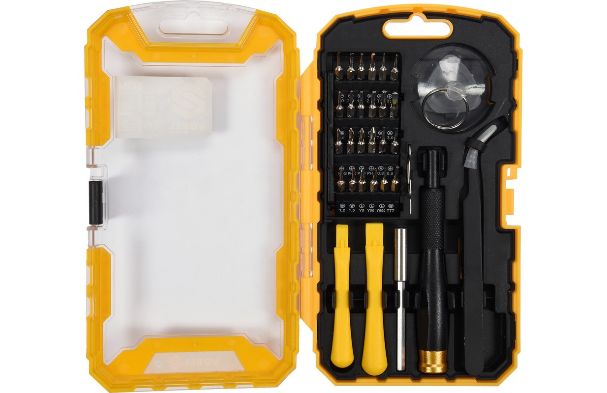 Набор для ремонта мобильных телефонов Vorel 64384 предназначен для обслуживания телефонов, смартфонов, навигаторов и другого электронного оборудования. Упакован в практичный, прочный пластиковый кейс.