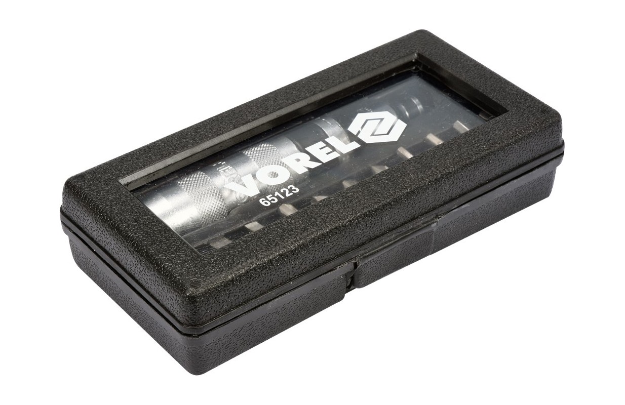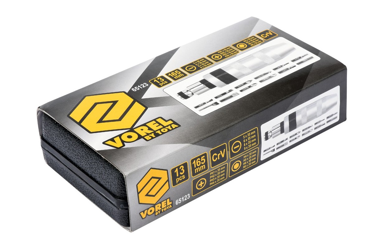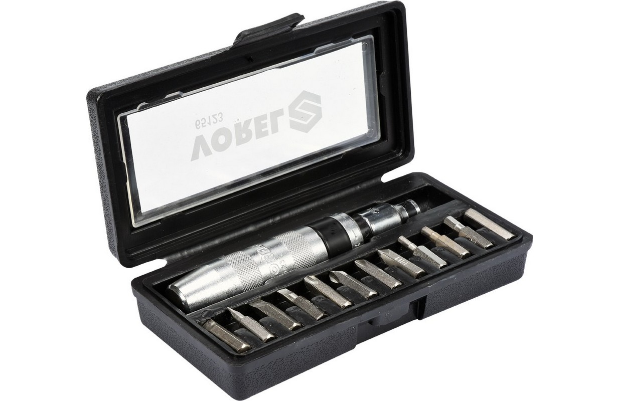 Крученая отвертка с 12 наконечниками Vorel 65123. Биты уаз отвертки изготовлены из прочной, инструментальной стали хром-ванадиевой CrV.