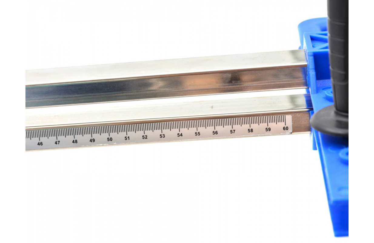 • Сантиметровая шкала на направляющей позволяет точно определить ширину реза