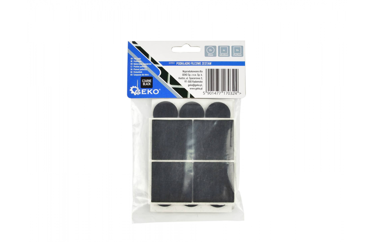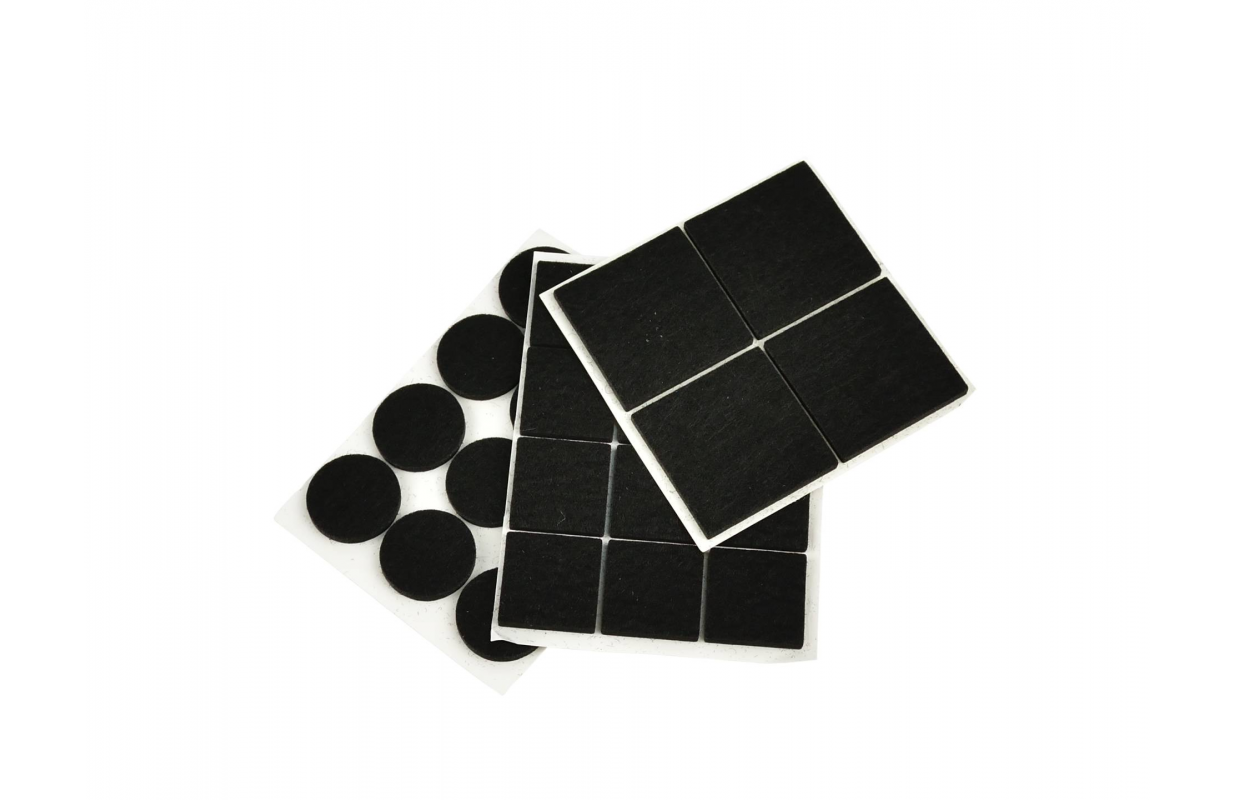 Войлочные накладки для мебельного гарнитура (черные) – круглые 25мм и прямоугольные 25х25мм + 40х40мм 28шт. (G29812)