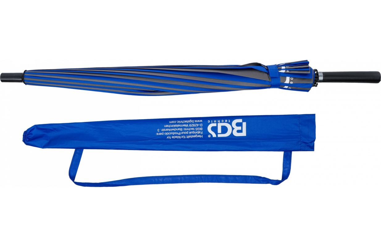 Описание Техническая дата защищает от дождя, ветра и солнца таким же образом Прочное качество, которое делает его надежным компаньоном прочная конструкция рамы из закаленной стали Усиленные стеклопластиковые панели чрезвычайно водоотталкивающая натуральная шелковая ткань Легкий и быстросохнущий современный фирменный дизайн BGS® на различных панелях пластиковая ручка с полиуретановым покрытием с замыкающим контуром Диаметр: 110 мм