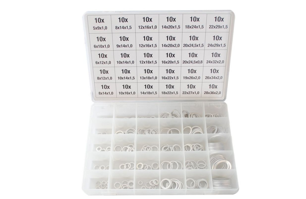 300 шт. Смешанные алюминиевые шайбы, ассортимент метрических размеров