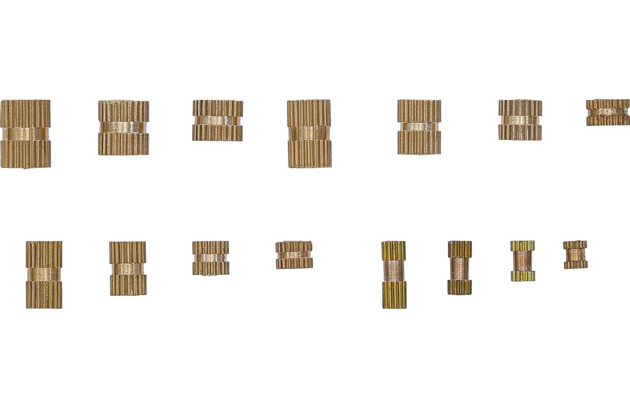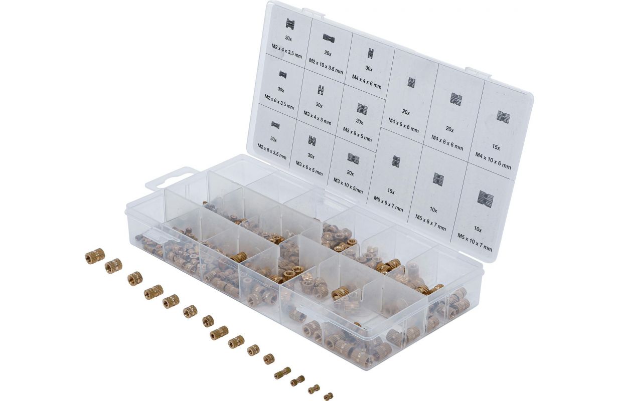 30 вставных гаек / резьбовых вставок. M2 x 0,4, длина 4 мм, Ø 3,5 мм 30 вставных гаек / резьбовых вставок. M2 x 0,4, длина 6 мм, Ø 3,5 мм 30 вставных гаек / резьбовых вставок. M2 x 0,4, длина 8 мм, Ø 3,5 мм 20 вставных гаек / резьбовых вставок. M2 x 0,4, длина 10 мм, Ø 3,5 мм 30 вставных гаек / резьбовых вставок. M3 x 0,5, длина 4 мм, Ø 5 мм 30 вставных гаек / резьбовых вставок. M3 x 0,5, длина 6 мм, Ø 5 мм 20 вставных гаек / резьбовых вставок. M3 x 0,5, длина 8 мм, Ø 5 мм 20 вставных гаек / резьбовых вставок. M3 x 0,5, длина 10 мм, Ø 5 мм 30 вставных гаек / резьбовых вставок. M4 x 0,7, длина 4 мм, Ø 6 мм 20 вставных гаек / резьбовых вставок. M4 x 0,7, длина 6 мм, Ø 6 мм 20 вставных гаек / резьбовых вставок. M4 x 0,7, длина 8 мм, Ø 6 мм 15 вставных гаек / резьбовых вставок. M4 x 0,7, длина 10 мм, Ø 6 мм 15 вставных гаек / резьбовых вставок. M5 x 0,8, длина 6 мм, Ø 7 мм 10 вставных гаек / резьбовых вставок. M5 x 0,8, длина 8 мм, Ø 7 мм 10 вставных гаек / резьбовых вставок. M5 x 0,8, длина 10 мм, Ø 7 мм Технические данные Материал: Твердая латунь Упаковка, подходящая для настенного висения Да Вес брутто 326 г